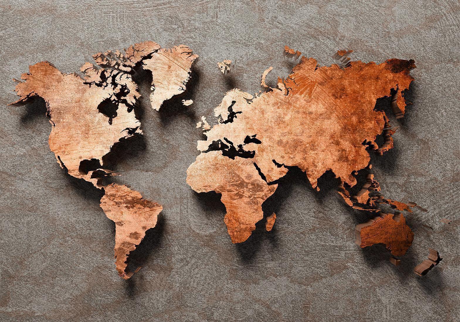 Fototapete Kupfer-Weltkarte – für stilvolle Weltenbummler.