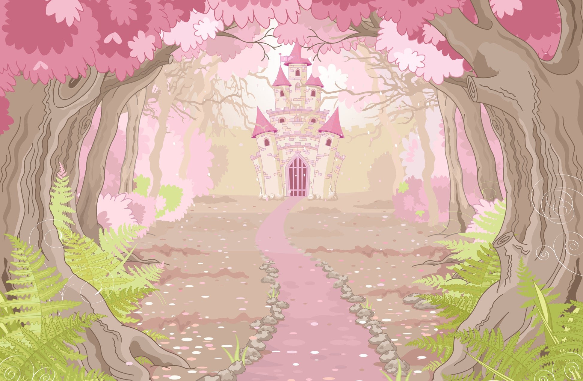 Fototapete Schloss im rosafarbenen Wald – Märchen für Mädchenzimmer