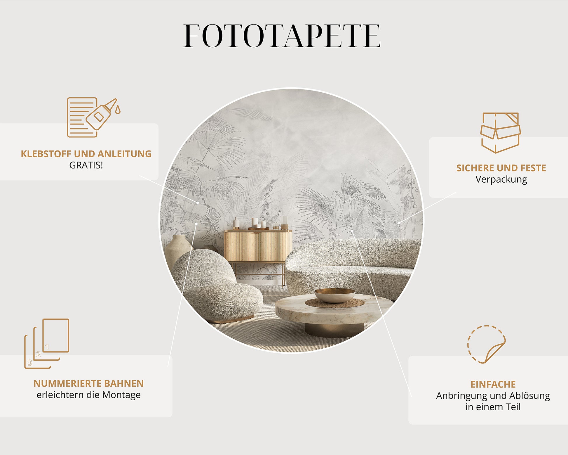 - ✓ Die Tapete wird mit Kleber geliefert (außer selbstklebende Variante)