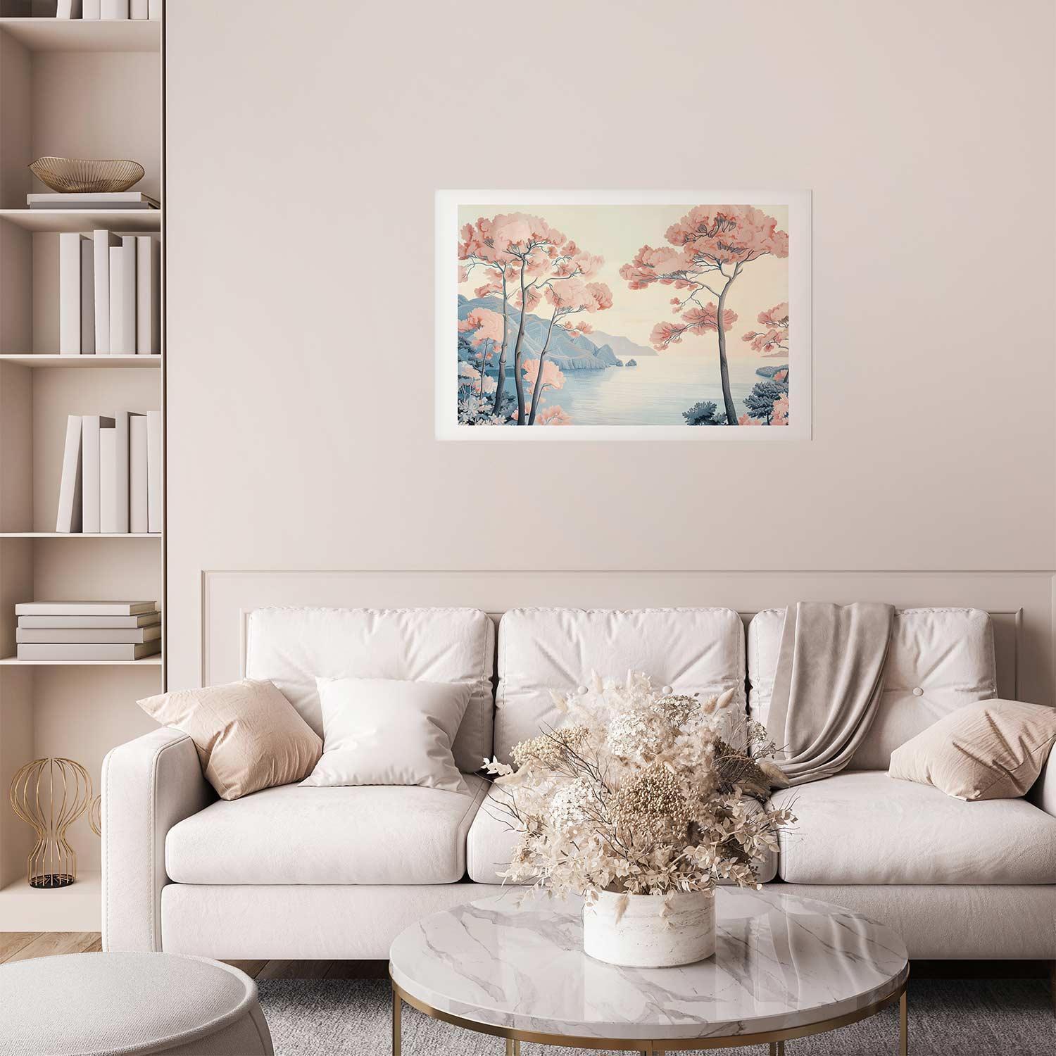 Poster - Ocean Cliffs and Trees Delicate Motif in Pastel Colors