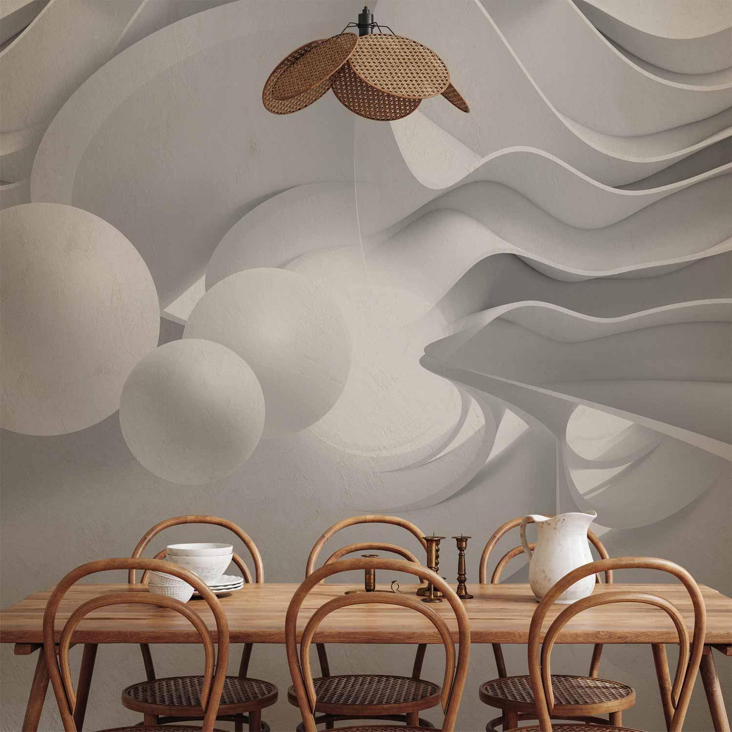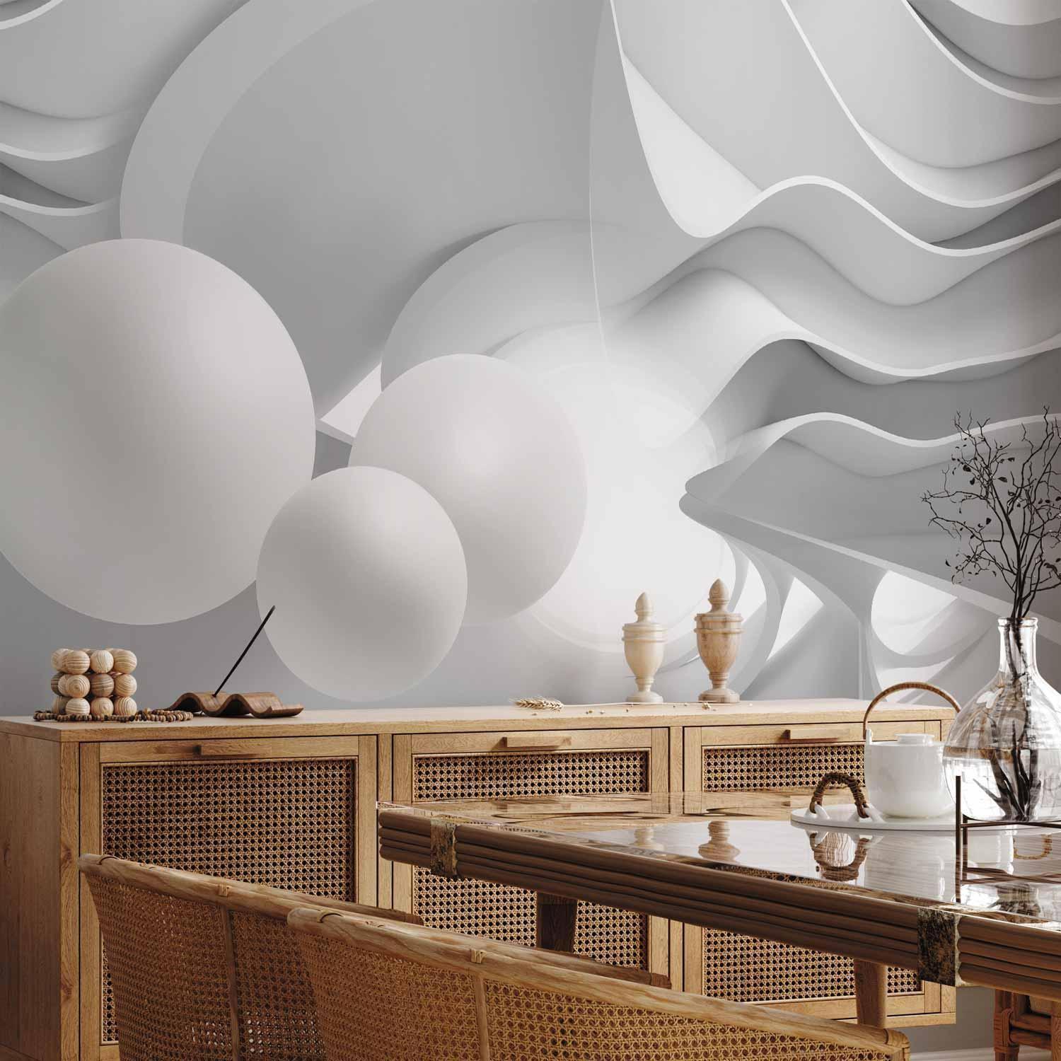Diese hochwertige Fototapete ist ein Meisterwerk der optischen Täuschung. Die präzise konstruierte Perspektive erzeugt einen Sog-Effekt, der Räume nicht nur größer, sondern auch dynamischer wirken lässt. Das reine Weiß verstärkt die Illusion von Licht und Weite und schafft eine fast meditative Klarheit – ideal für moderne Räume, die Purismus mit Raffinesse verbinden.