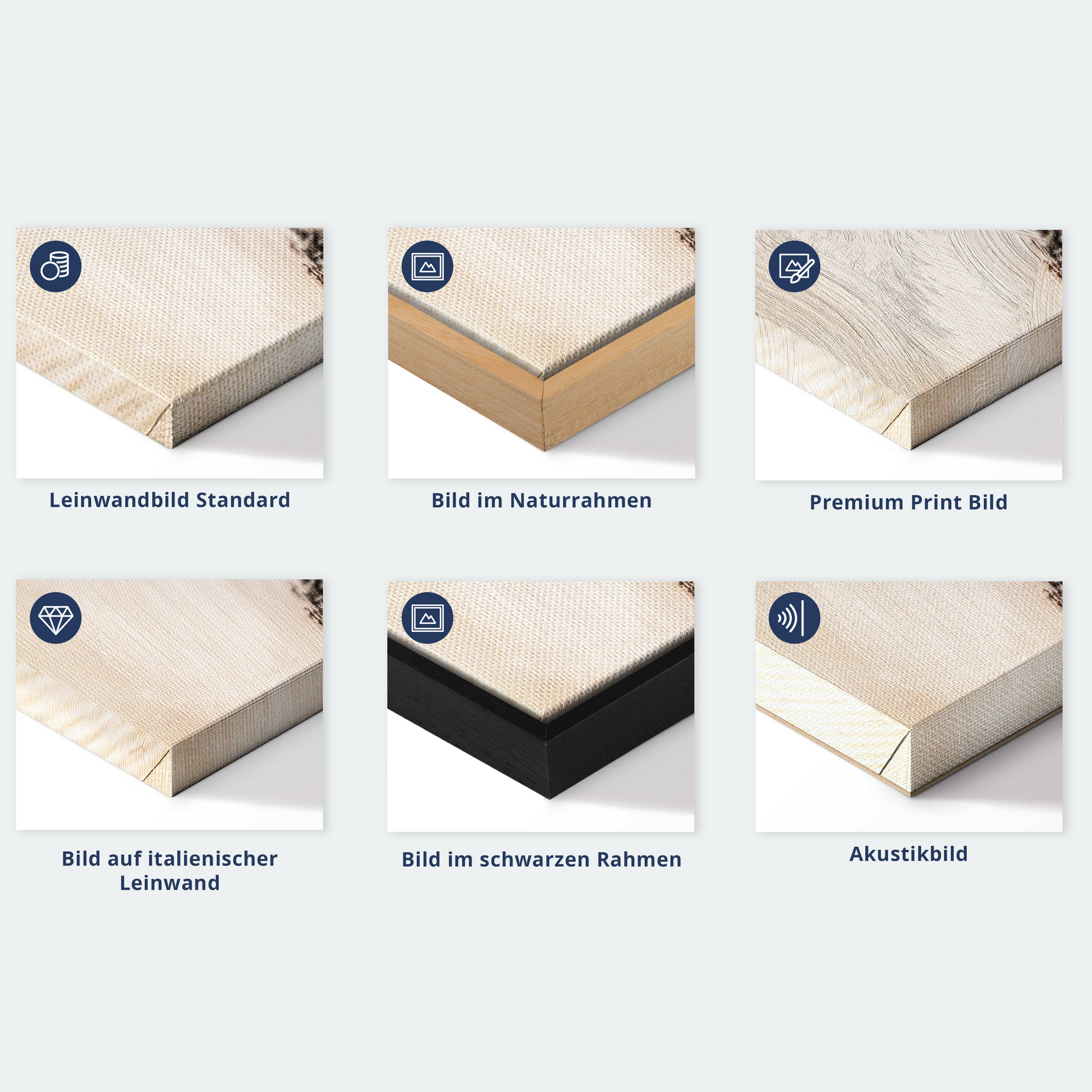 Das Angebot umfasst eine Version auf Vliesleinwand (Standard), auf italienischer Leinwand, Premium Print (ein Bild, das auf italienischer Leinwand gedruckt und von Hand mit einer Schicht transparentem Gel überzogen ist, das die Pinselstriche des Künstlers imitiert) sowie in einem soliden, hölzernen American-Box-Rahmen (zwei Rahmenfarben zur Auswahl, Muster gedruckt auf italienischer Leinwand).