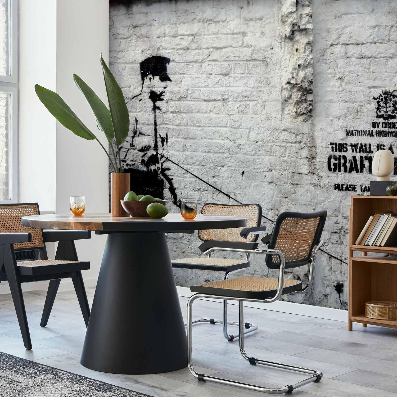 Fototapete "Fototapete - Banksy - Graffiti Area" ist ein hochwertiger Digitaldruck, der ein qualitativ hochwertiges Produkt und eine einfache Montage garantiert. Fototapete Schlafzimmer ist eine Revolution in der Wandgestaltung. Wählen Sie das passende Universalmotiv für Ihr Schlafzimmer und genießen Sie jede Nacht einen einzigartigen Ausblick. Sie können die Größe der Dekoration an Ihre räumlichen Gegebenheiten anpassen. Außerdem können Sie das Material und die zusätzlichen Effekte wählen, die auf der Fototapete Schlafzimmer zu sehen sind. Ähnliche Motive, die Sie im Schlafzimmer verwenden, können auch in der Küche eingesetzt werden. Die Fototapete Küche eignet sich auch gut für das Schlafzimmer und das Wohnzimmer. Sie können Ihre Wanddekoration nach Belieben konfigurieren und sie so anpassen, dass sie perfekt in jeden Raum passt.