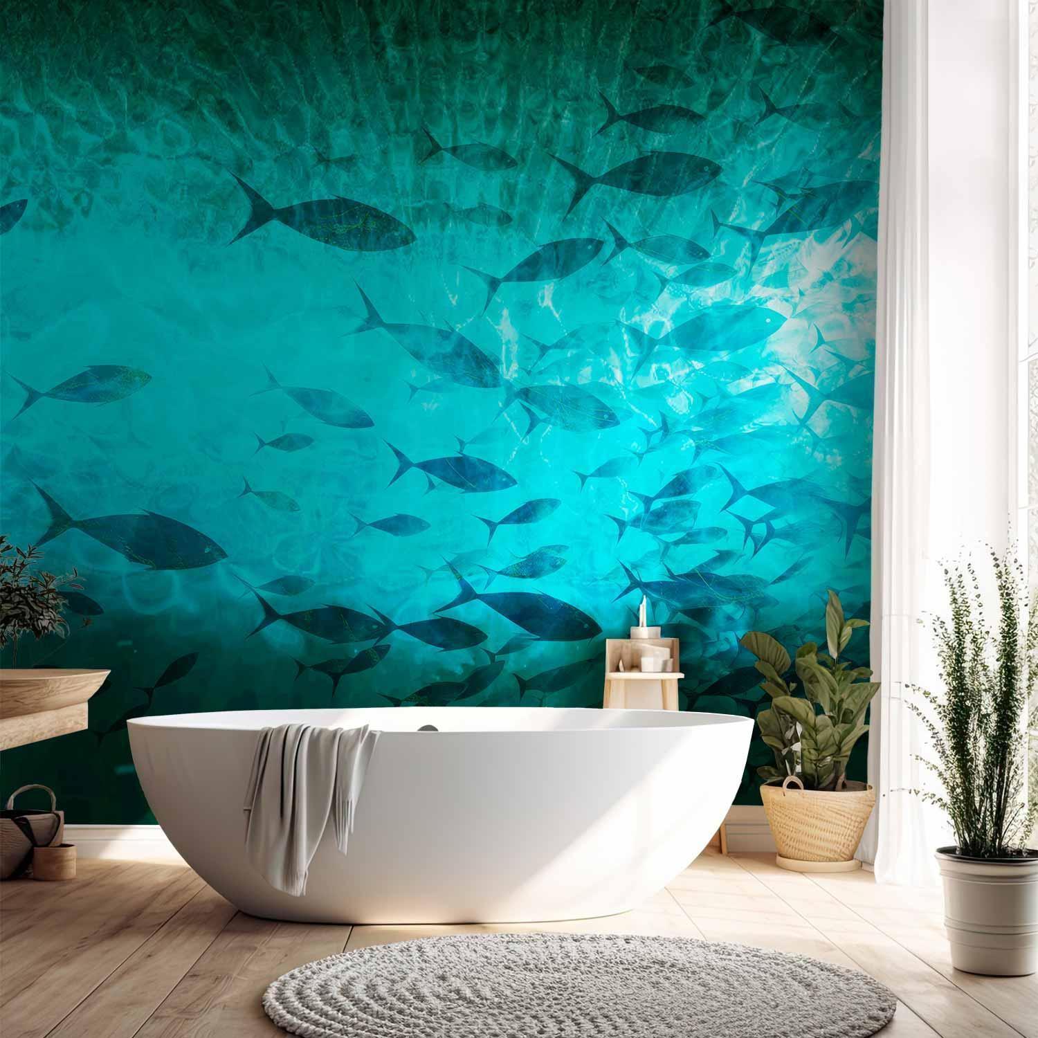 Tauche ein in die faszinierende Unterwasserwelt – diese Fototapete mit einem Schwarm dunkler Fische bringt maritime Eleganz und beruhigende Tiefe in dein Zuhause. Das minimalistische Design in gedeckten Tönen schafft eine entspannte Atmosphäre, die perfekt zu modernen Wohnkonzepten passt. Die harmonische Bewegung des Fischschwarms verleiht deinen Räumen eine natürliche Dynamik und lädt zum Träumen ein.
