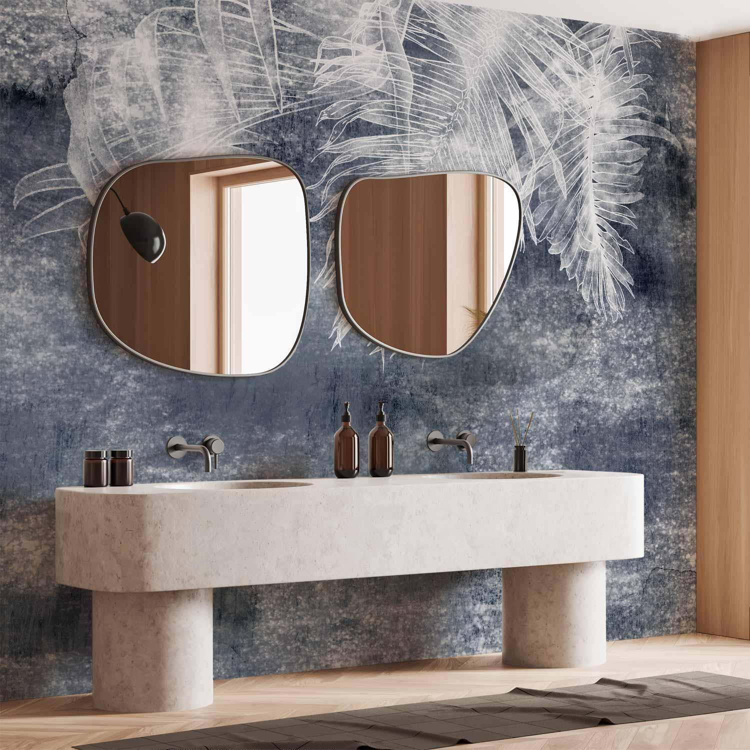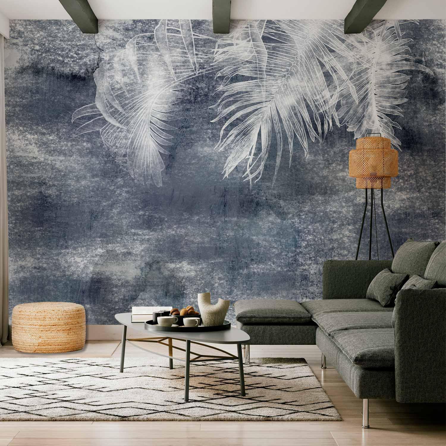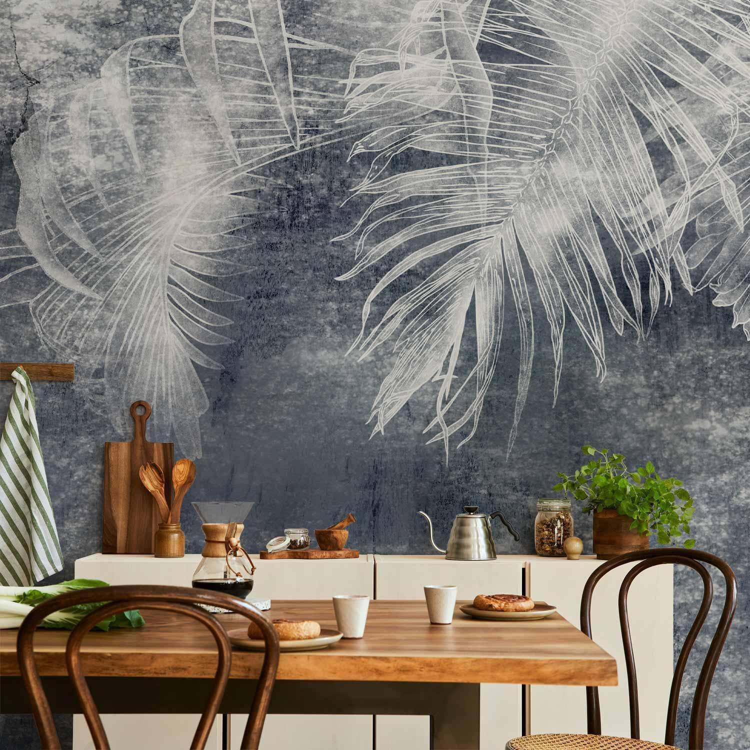 Fototapeten sind in den letzten Jahren eine häufige Wahl für Wanddekoration geworden. Sie sind eine großartige Wanddeko, die sich für verschiedene Räume eignet. Fototapeten sind eine hervorragende Alternative für das Wohnzimmer, für das Schlafzimmer und auch für das Kinderzimmer. Diese einzigartigen Dekorationen passen in praktisch jeden Raum. Wenn Sie sich immer noch fragen, ob dies die richtige Wahl ist, sind Sie hier genau richtig. Fototapete "Fototapete - Abstraction with nature - exotic leaves on a blue background with pattern" wird Ihr Interieur völlig verändern. Hier finden Sie, was Sie brauchen.