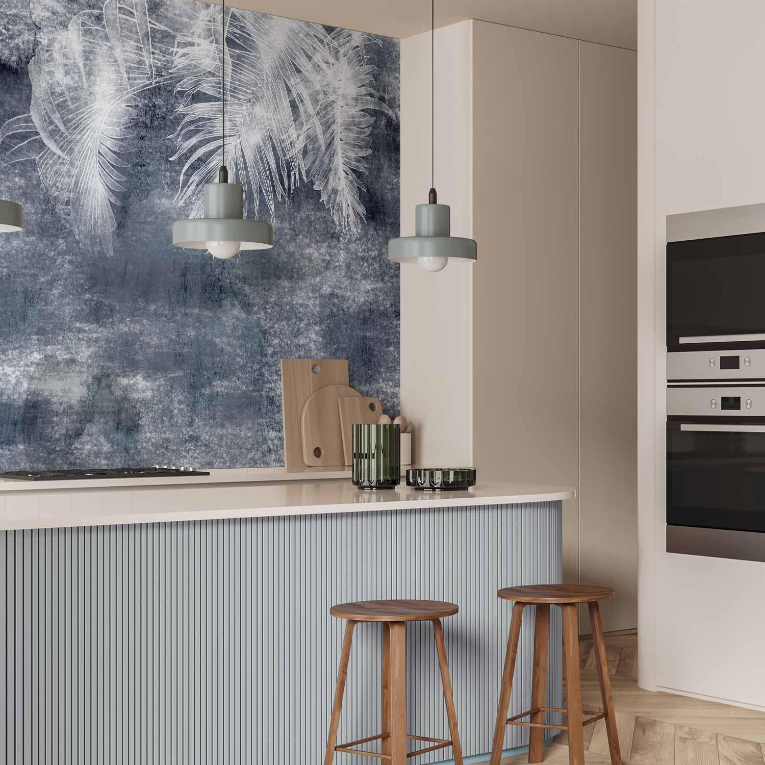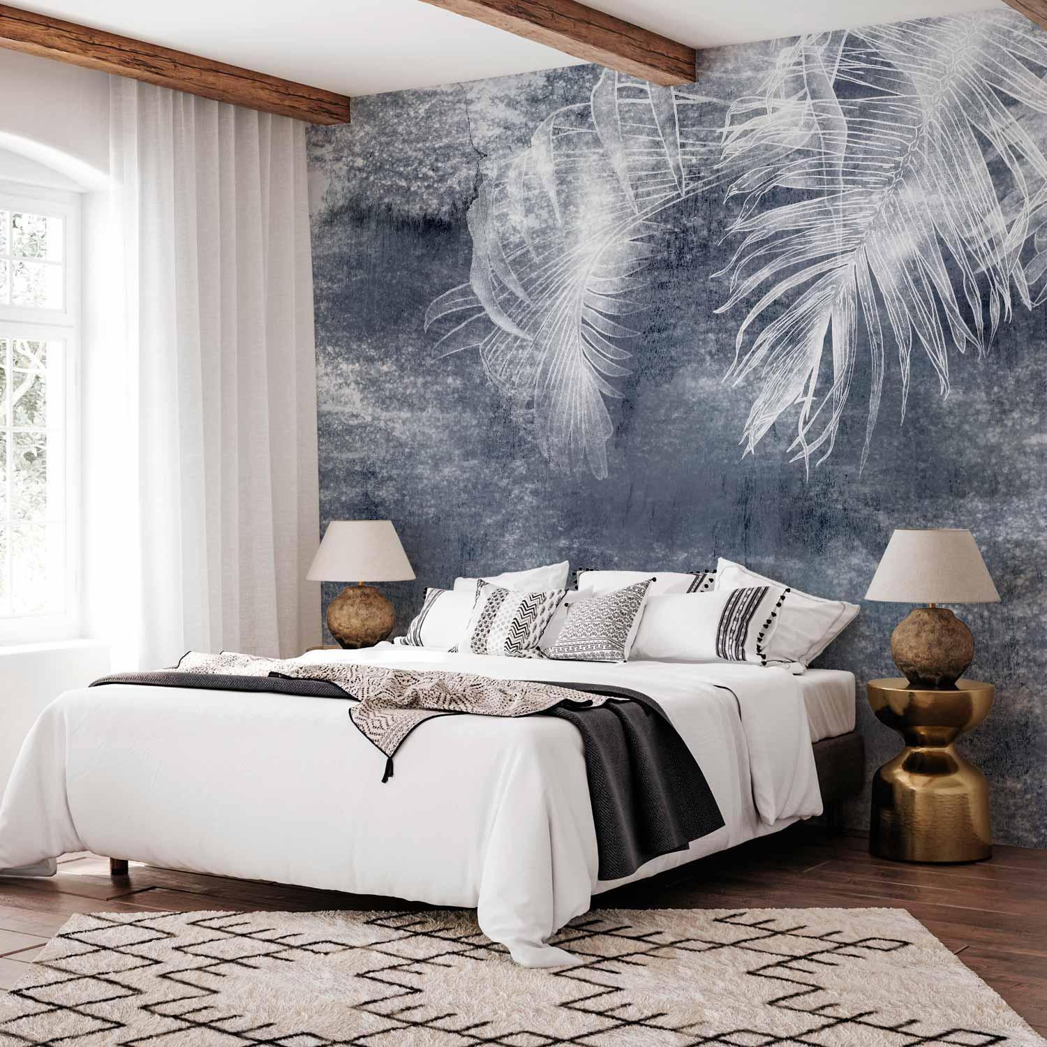 Fototapete "Fototapete - Abstraction with nature - exotic leaves on a blue background with pattern" ist ein hochwertiger Digitaldruck, der ein qualitativ hochwertiges Produkt und eine einfache Montage garantiert. Fototapete Schlafzimmer ist eine Revolution in der Wandgestaltung. Wählen Sie das passende Universalmotiv für Ihr Schlafzimmer und genießen Sie jede Nacht einen einzigartigen Ausblick. Sie können die Größe der Dekoration an Ihre räumlichen Gegebenheiten anpassen. Außerdem können Sie das Material und die zusätzlichen Effekte wählen, die auf der Fototapete Schlafzimmer zu sehen sind. Ähnliche Motive, die Sie im Schlafzimmer verwenden, können auch in der Küche eingesetzt werden. Die Fototapete Küche eignet sich auch gut für das Schlafzimmer und das Wohnzimmer. Sie können Ihre Wanddekoration nach Belieben konfigurieren und sie so anpassen, dass sie perfekt in jeden Raum passt.