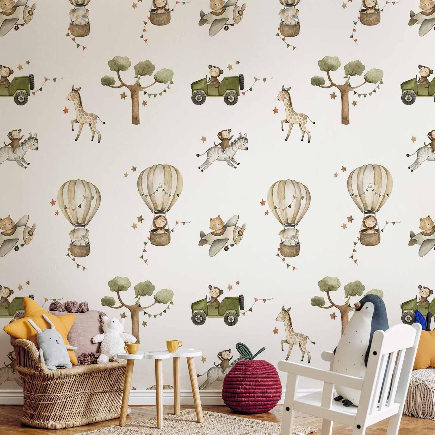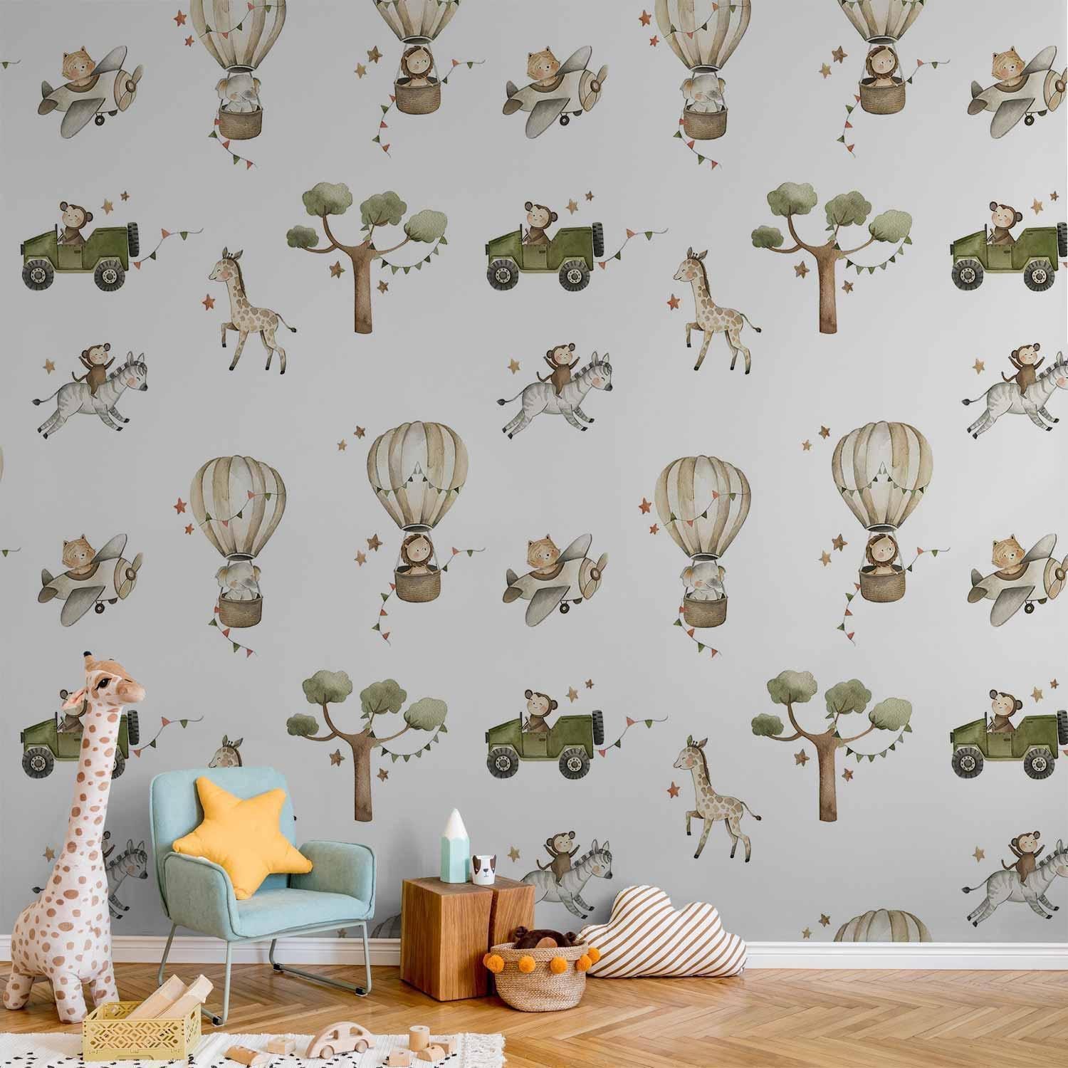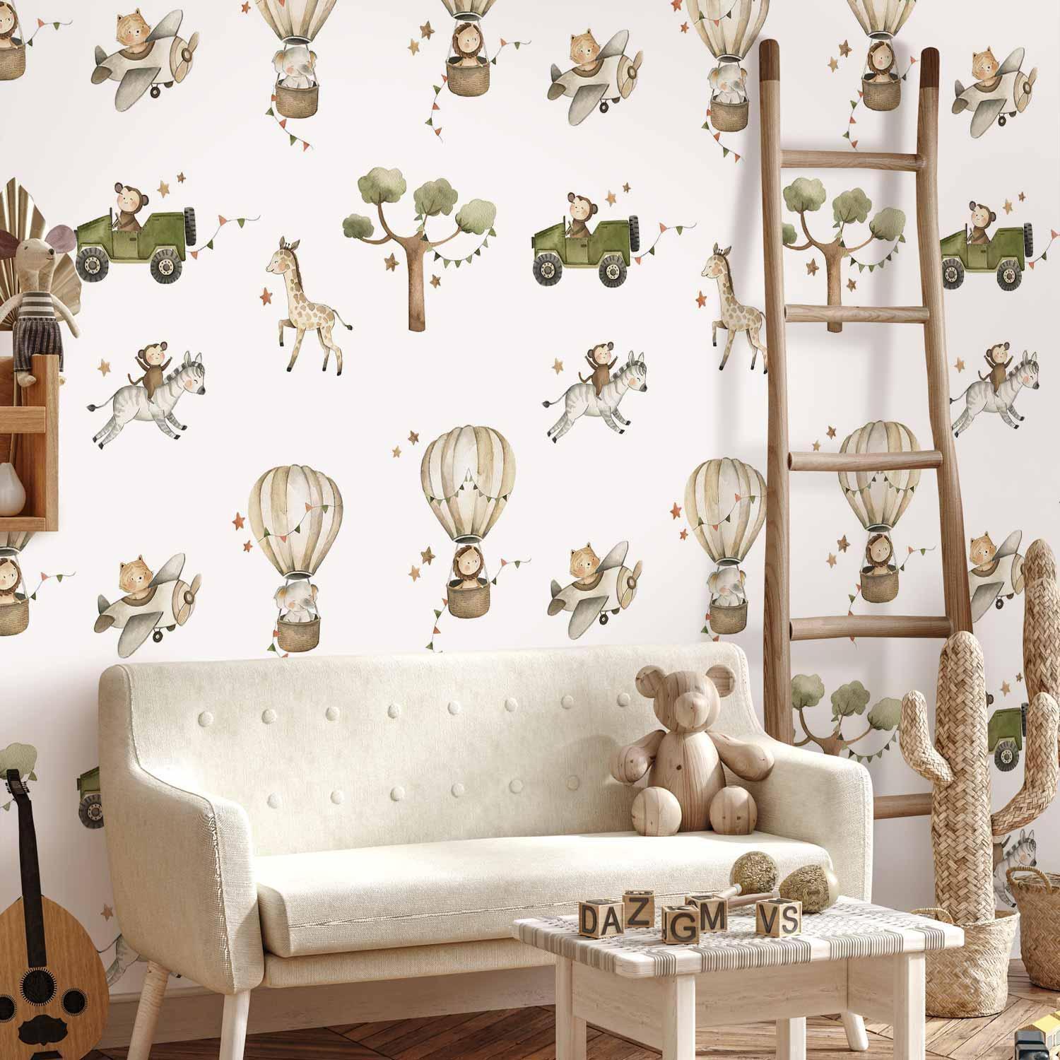 Fototapete - Africa for Toddler - Animals on Savannah in Watercolour Technique