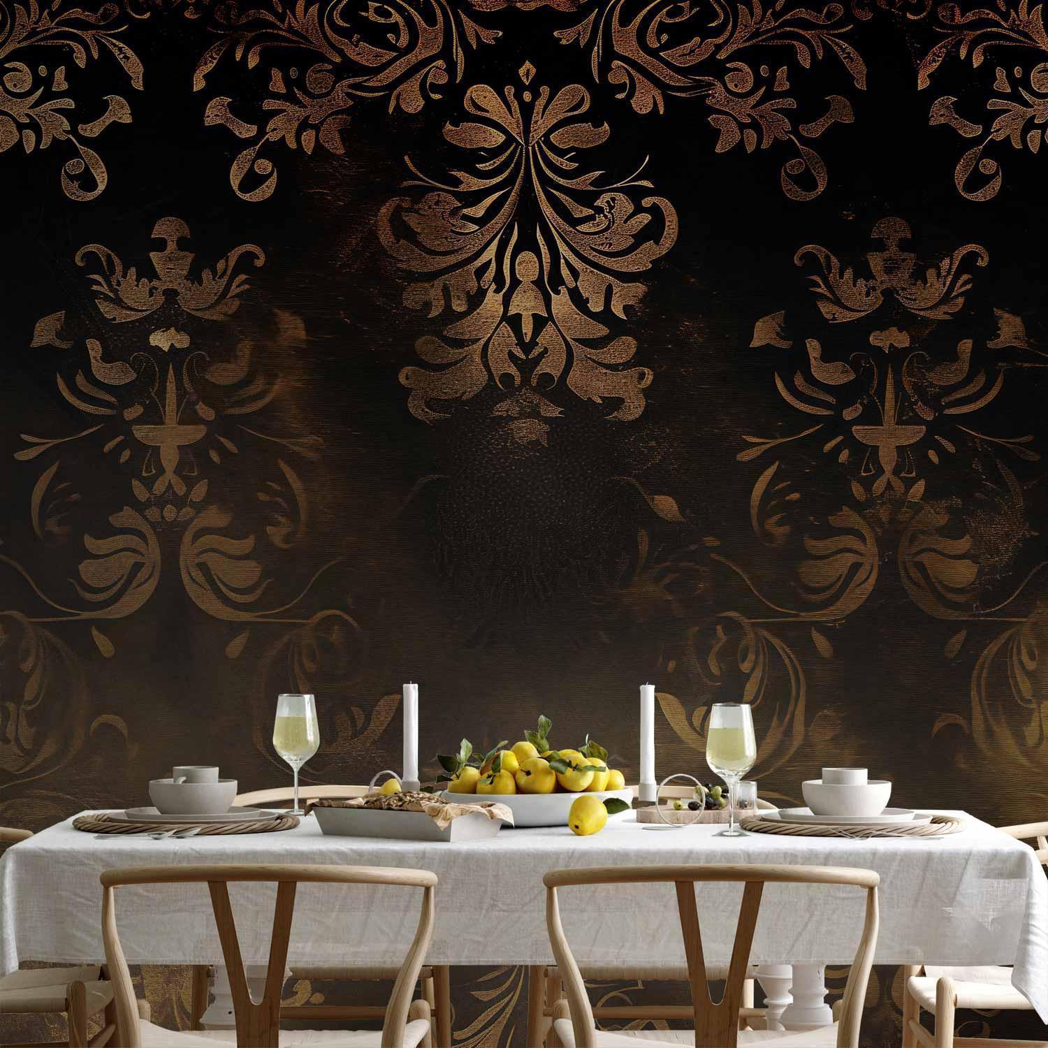Fototapete "Fototapete - Baroque Ornaments in Patinated Gold and Browns: Retro Motif" ist ein hochwertiger Digitaldruck, der ein qualitativ hochwertiges Produkt und eine einfache Montage garantiert. Fototapete Schlafzimmer ist eine Revolution in der Wandgestaltung. Wählen Sie das passende Universalmotiv für Ihr Schlafzimmer und genießen Sie jede Nacht einen einzigartigen Ausblick. Sie können die Größe der Dekoration an Ihre räumlichen Gegebenheiten anpassen. Außerdem können Sie das Material und die zusätzlichen Effekte wählen, die auf der Fototapete Schlafzimmer zu sehen sind. Ähnliche Motive, die Sie im Schlafzimmer verwenden, können auch in der Küche eingesetzt werden. Die Fototapete Küche eignet sich auch gut für das Schlafzimmer und das Wohnzimmer. Sie können Ihre Wanddekoration nach Belieben konfigurieren und sie so anpassen, dass sie perfekt in jeden Raum passt.