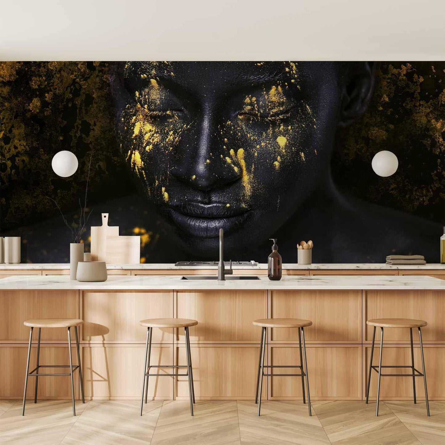 Die Fototapete „Bathed in Gold“ überzeugt mit einem edlen Farbspiel aus warmem Gold und kühlem Grau. Das abstrakte Design wirkt wie in Licht getaucht – ein Kunstwerk für die Wand, das jedem Raum Tiefe und Eleganz verleiht.