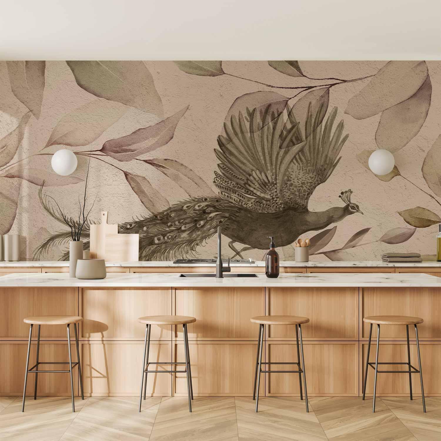 Fototapeten sind in den letzten Jahren eine häufige Wahl für Wanddekoration geworden. Sie sind eine großartige Wanddeko, die sich für verschiedene Räume eignet. Fototapeten sind eine hervorragende Alternative für das Wohnzimmer, für das Schlafzimmer und auch für das Kinderzimmer. Diese einzigartigen Dekorationen passen in praktisch jeden Raum. Wenn Sie sich immer noch fragen, ob dies die richtige Wahl ist, sind Sie hier genau richtig. Fototapete "Fototapete - Bird among the leaves - floral motif with a flying peacock in cool tones" wird Ihr Interieur völlig verändern. Hier finden Sie, was Sie brauchen.