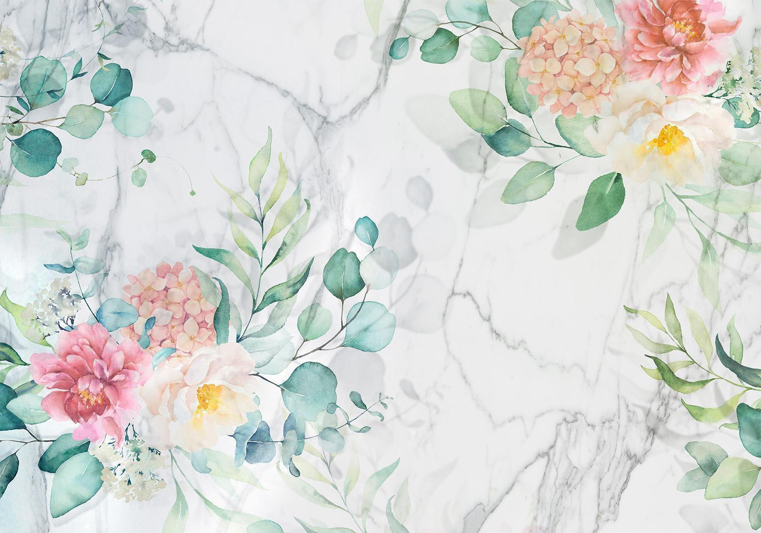 Fototapete Blütenmarmor – Elegante Fusion aus Natur und Stein