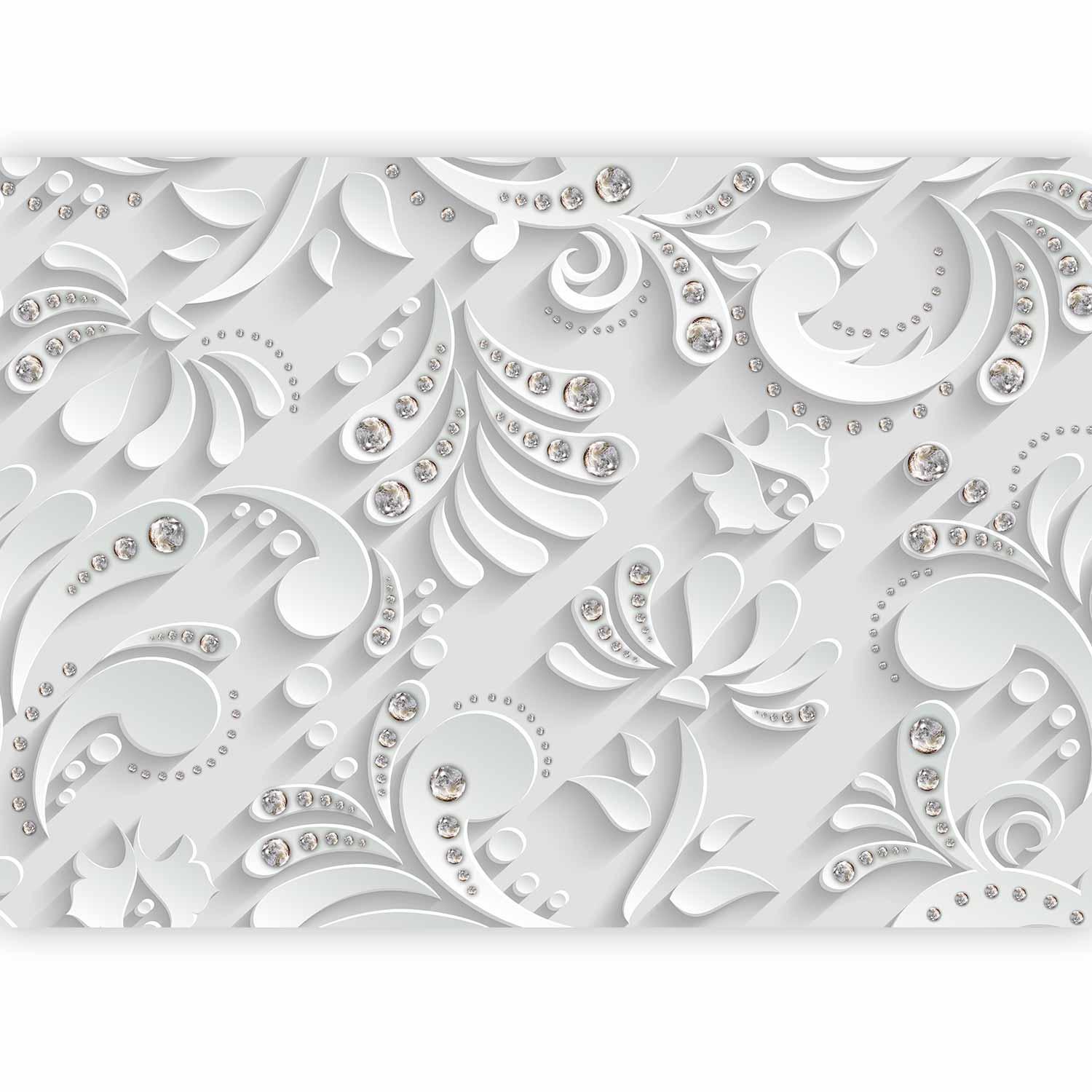 Fototapete Blumen mit Kristallen – Elegante 3D-Optik für luxuriöse Räume