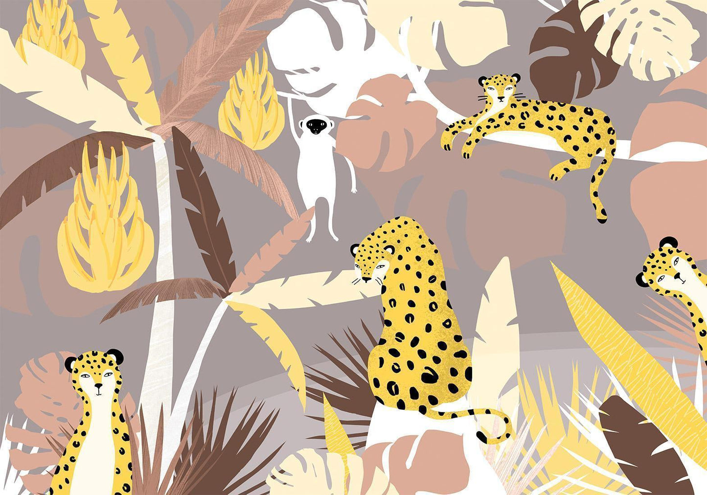 Fototapeten sind in den letzten Jahren eine häufige Wahl für Wanddekoration geworden. Sie sind eine großartige Wanddeko, die sich für verschiedene Räume eignet. Fototapeten sind eine hervorragende Alternative für das Wohnzimmer, für das Schlafzimmer und auch für das Kinderzimmer. Diese einzigartigen Dekorationen passen in praktisch jeden Raum. Wenn Sie sich immer noch fragen, ob dies die richtige Wahl ist, sind Sie hier genau richtig. Fototapete "Fototapete - Cheetahs in the jungle - landscape with exotic animals with palm trees for children" wird Ihr Interieur völlig verändern. Hier finden Sie, was Sie brauchen.