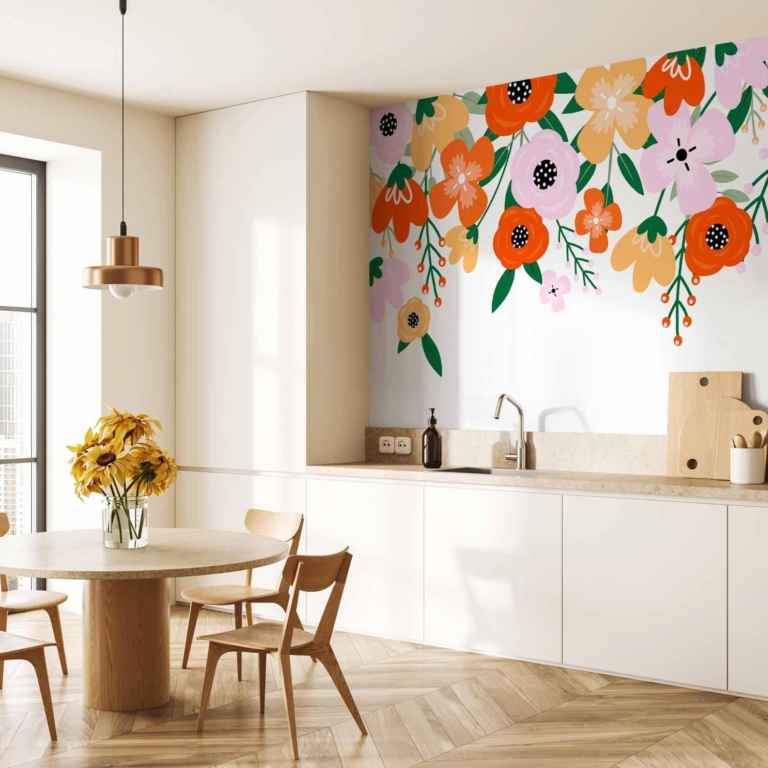 Fototapete "Fototapete - Colorful Bloom - First Variant" ist ein hochwertiger Digitaldruck, der ein qualitativ hochwertiges Produkt und eine einfache Montage garantiert. Fototapete Schlafzimmer ist eine Revolution in der Wandgestaltung. Wählen Sie das passende Universalmotiv für Ihr Schlafzimmer und genießen Sie jede Nacht einen einzigartigen Ausblick. Sie können die Größe der Dekoration an Ihre räumlichen Gegebenheiten anpassen. Außerdem können Sie das Material und die zusätzlichen Effekte wählen, die auf der Fototapete Schlafzimmer zu sehen sind. Ähnliche Motive, die Sie im Schlafzimmer verwenden, können auch in der Küche eingesetzt werden. Die Fototapete Küche eignet sich auch gut für das Schlafzimmer und das Wohnzimmer. Sie können Ihre Wanddekoration nach Belieben konfigurieren und sie so anpassen, dass sie perfekt in jeden Raum passt.