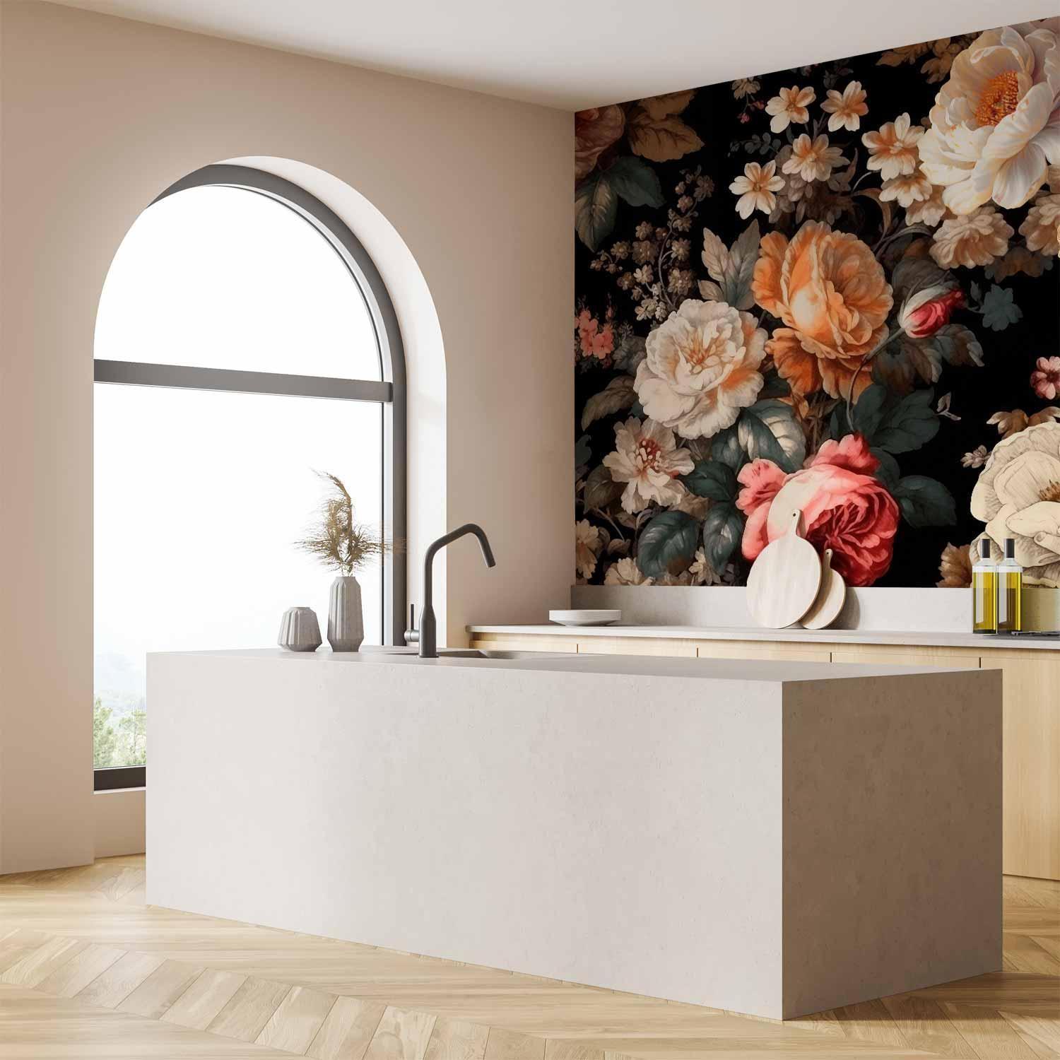 Fototapete "Fototapete - Colourful flowers on a black background" ist ein hochwertiger Digitaldruck, der ein qualitativ hochwertiges Produkt und eine einfache Montage garantiert. Fototapete Schlafzimmer ist eine Revolution in der Wandgestaltung. Wählen Sie das passende Universalmotiv für Ihr Schlafzimmer und genießen Sie jede Nacht einen einzigartigen Ausblick. Sie können die Größe der Dekoration an Ihre räumlichen Gegebenheiten anpassen. Außerdem können Sie das Material und die zusätzlichen Effekte wählen, die auf der Fototapete Schlafzimmer zu sehen sind. Ähnliche Motive, die Sie im Schlafzimmer verwenden, können auch in der Küche eingesetzt werden. Die Fototapete Küche eignet sich auch gut für das Schlafzimmer und das Wohnzimmer. Sie können Ihre Wanddekoration nach Belieben konfigurieren und sie so anpassen, dass sie perfekt in jeden Raum passt.