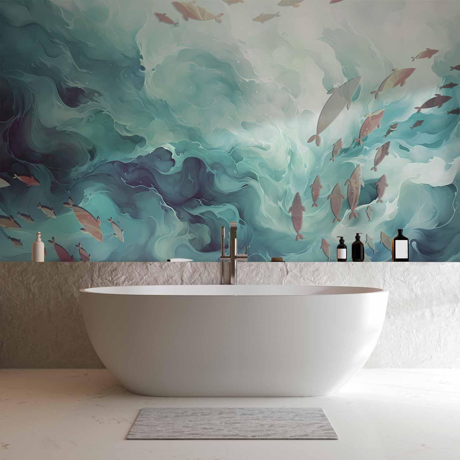 Fototapete "Fototapete - Fish in the ocean" ist ein hochwertiger Digitaldruck, der ein qualitativ hochwertiges Produkt und eine einfache Montage garantiert. Fototapete Schlafzimmer ist eine Revolution in der Wandgestaltung. Wählen Sie das passende Universalmotiv für Ihr Schlafzimmer und genießen Sie jede Nacht einen einzigartigen Ausblick. Sie können die Größe der Dekoration an Ihre räumlichen Gegebenheiten anpassen. Außerdem können Sie das Material und die zusätzlichen Effekte wählen, die auf der Fototapete Schlafzimmer zu sehen sind. Ähnliche Motive, die Sie im Schlafzimmer verwenden, können auch in der Küche eingesetzt werden. Die Fototapete Küche eignet sich auch gut für das Schlafzimmer und das Wohnzimmer. Sie können Ihre Wanddekoration nach Belieben konfigurieren und sie so anpassen, dass sie perfekt in jeden Raum passt.