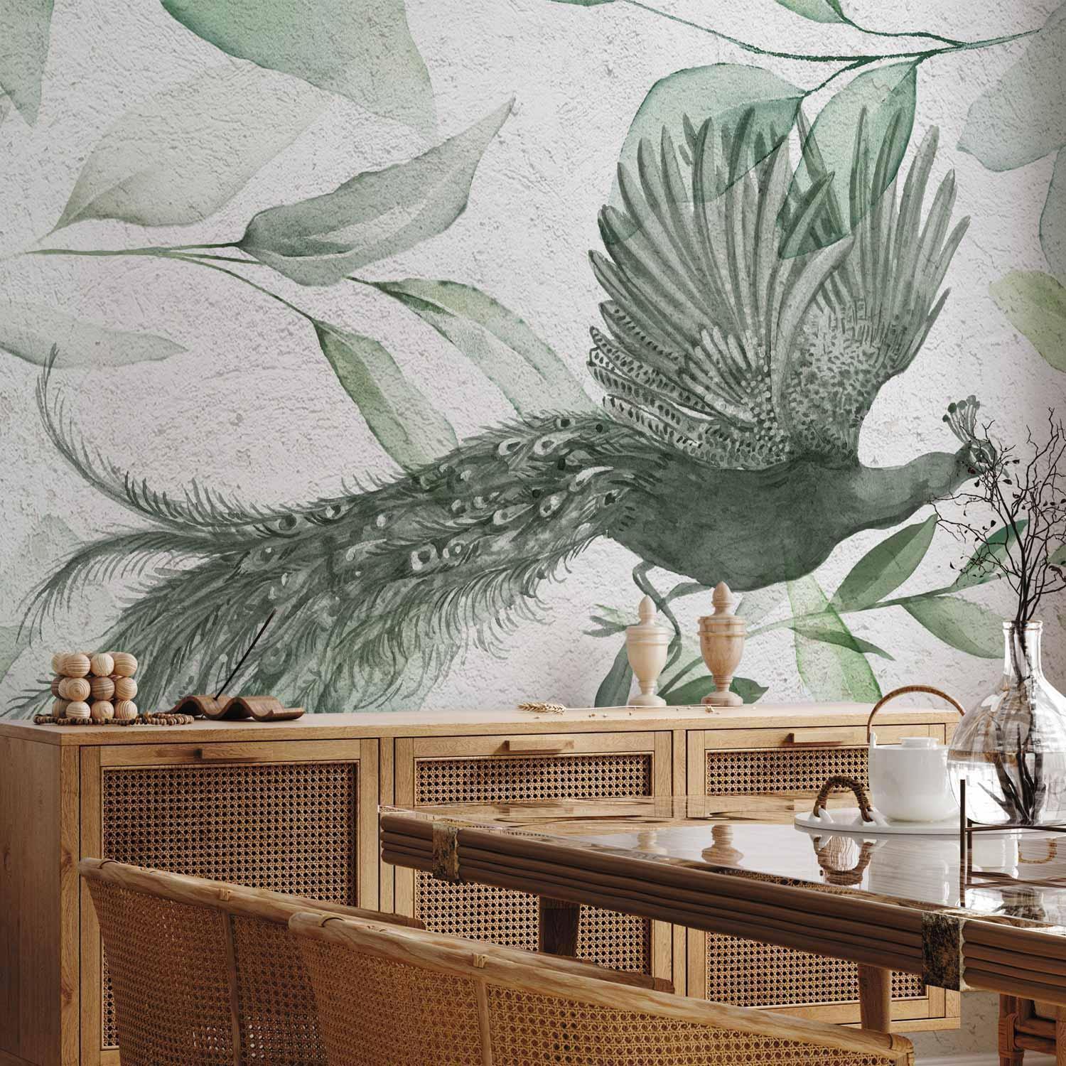 Fototapeten sind in den letzten Jahren eine häufige Wahl für Wanddekoration geworden. Sie sind eine großartige Wanddeko, die sich für verschiedene Räume eignet. Fototapeten sind eine hervorragende Alternative für das Wohnzimmer, für das Schlafzimmer und auch für das Kinderzimmer. Diese einzigartigen Dekorationen passen in praktisch jeden Raum. Wenn Sie sich immer noch fragen, ob dies die richtige Wahl ist, sind Sie hier genau richtig. Fototapete "Fototapete - Flight of a Peacock - Third Variant" wird Ihr Interieur völlig verändern. Hier finden Sie, was Sie brauchen.