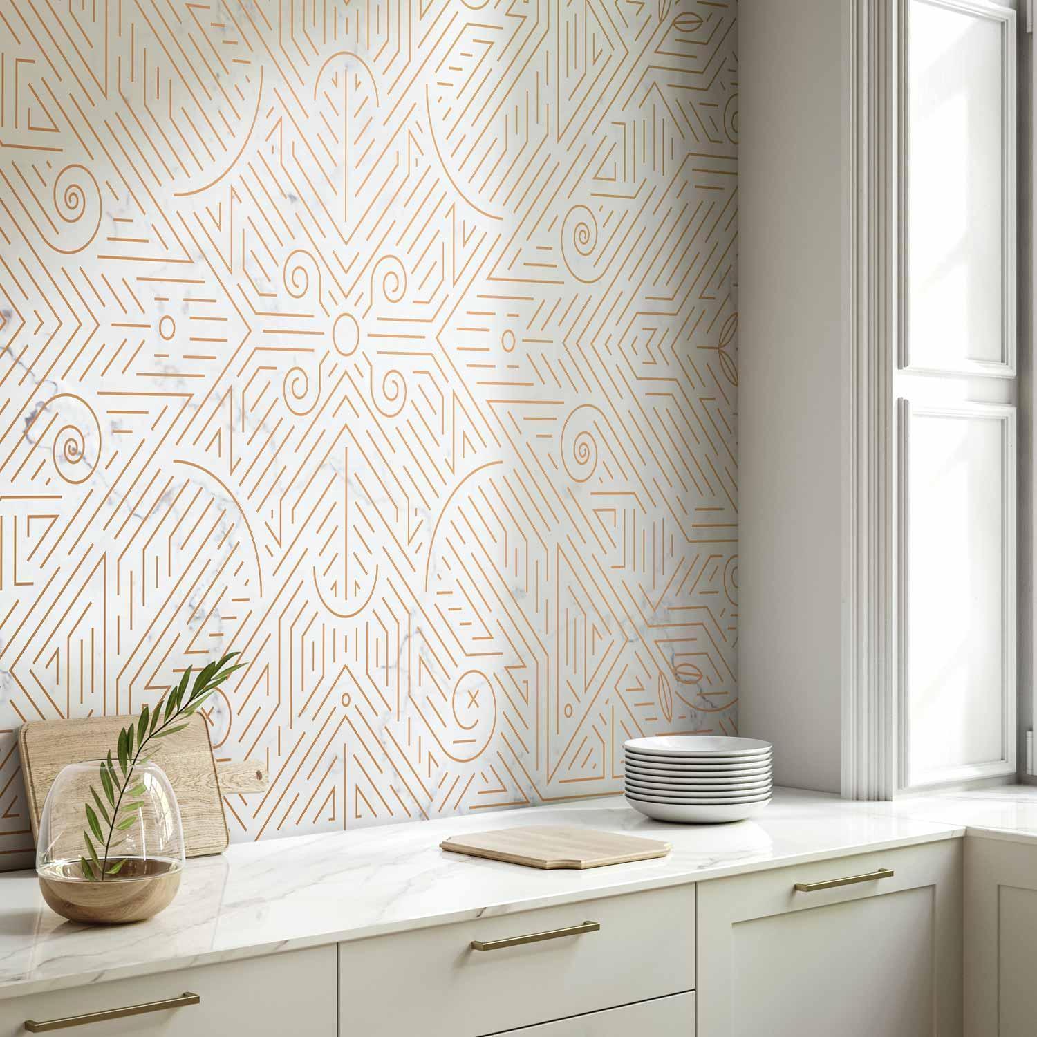 Fototapete - Geometric Pattern Shades of Gold and Marble Stone