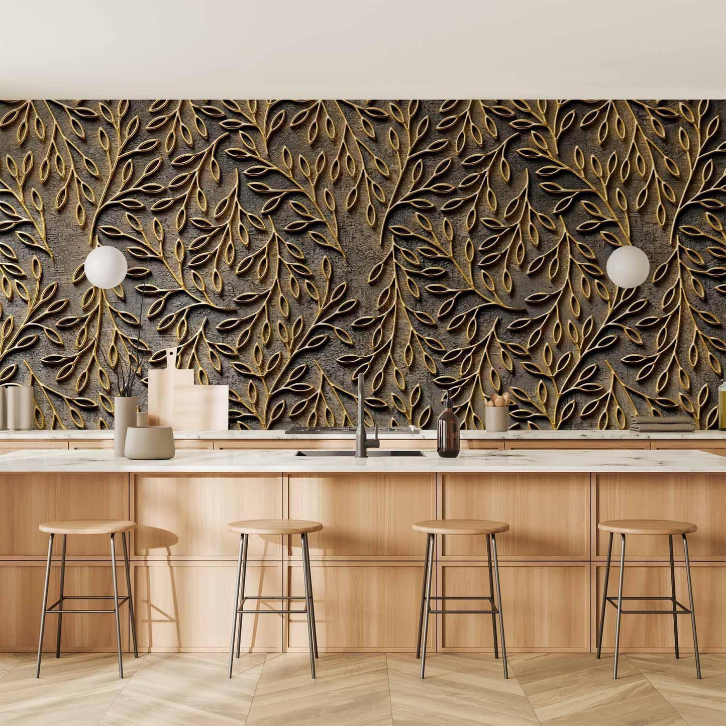 Fototapete „Goldene Ornamente“ – Stilvolle Eleganz für Ihre Wandgestaltung