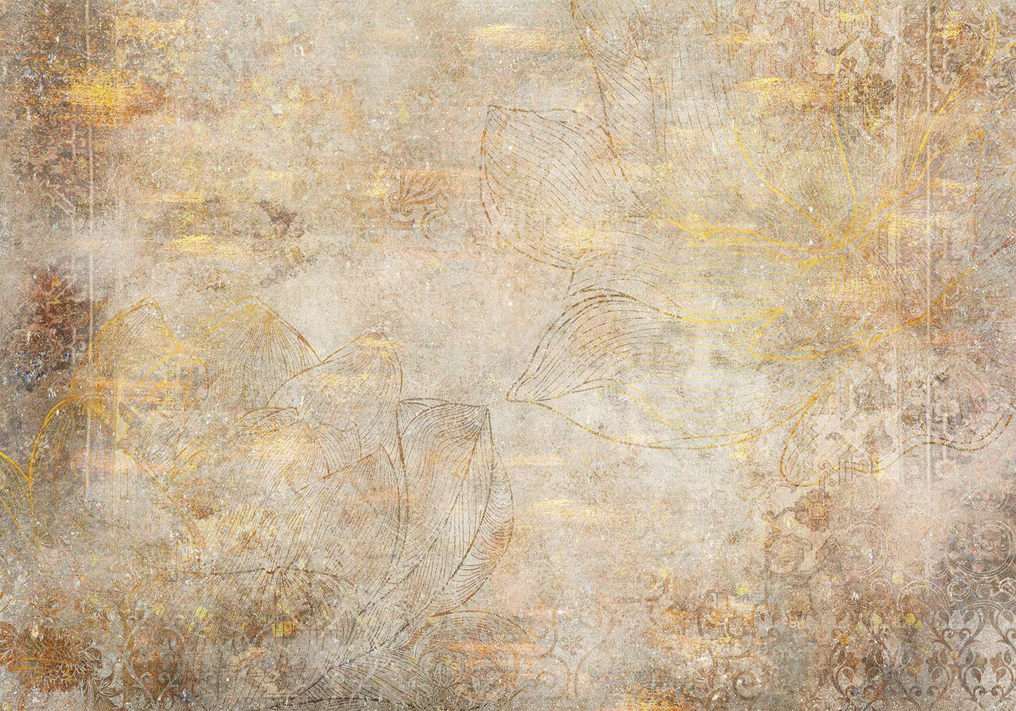 Fototapete „Goldene Etüde“ – Eleganz trifft auf feine Linien