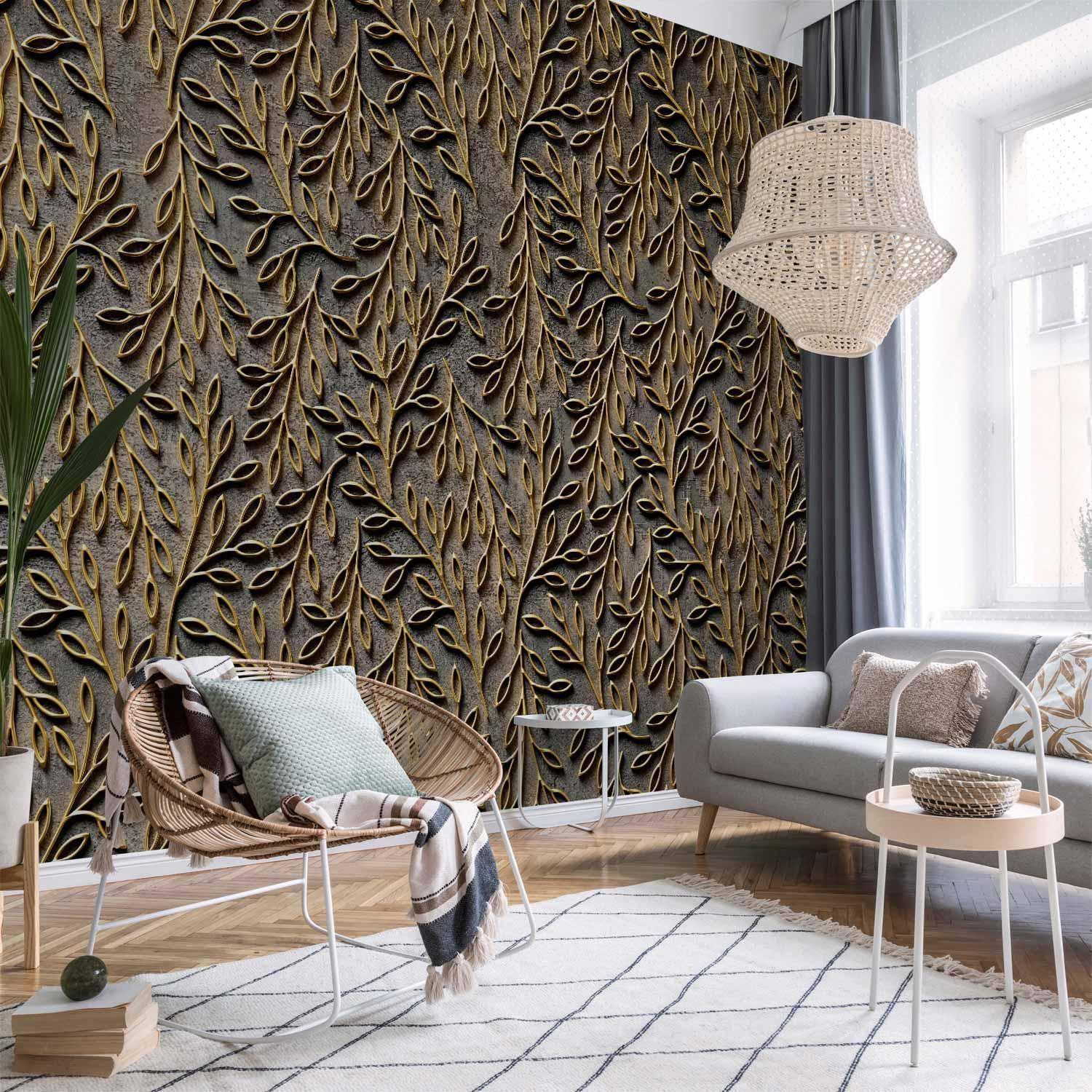 Fototapete „Goldene Ornamente“ – Stilvolle Eleganz für Ihre Wandgestaltung
