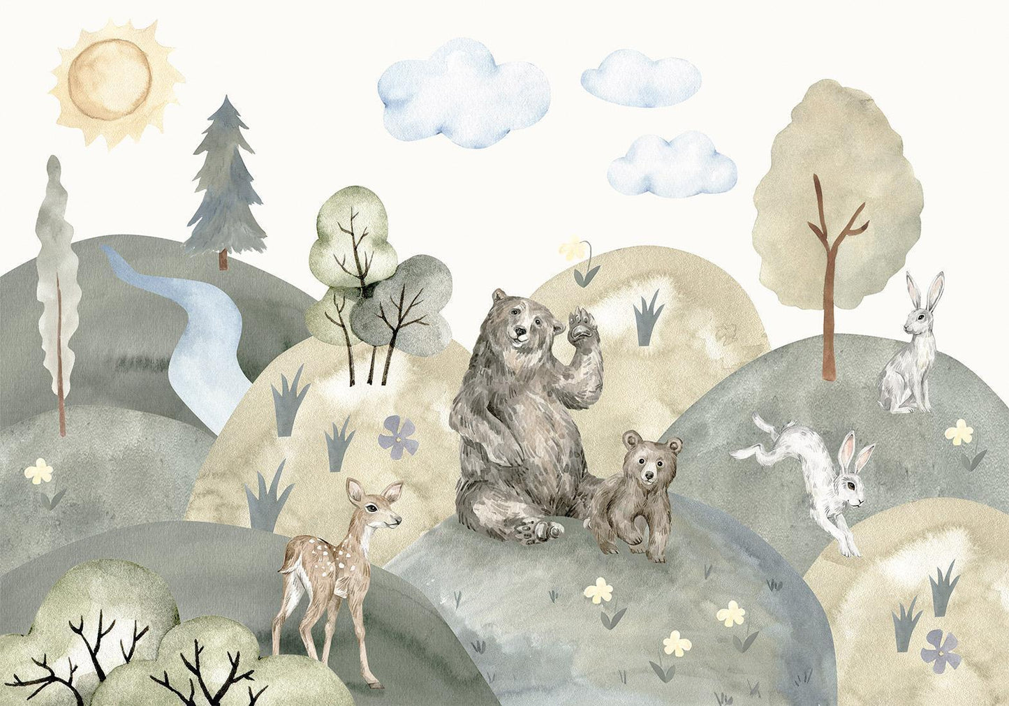 Fototapeten sind in den letzten Jahren eine häufige Wahl für Wanddekoration geworden. Sie sind eine großartige Wanddeko, die sich für verschiedene Räume eignet. Fototapeten sind eine hervorragende Alternative für das Wohnzimmer, für das Schlafzimmer und auch für das Kinderzimmer. Diese einzigartigen Dekorationen passen in praktisch jeden Raum. Wenn Sie sich immer noch fragen, ob dies die richtige Wahl ist, sind Sie hier genau richtig. Fototapete "Fototapete - Green Hills - a Valley With Animals Painted in Watercolours" wird Ihr Interieur völlig verändern. Hier finden Sie, was Sie brauchen.