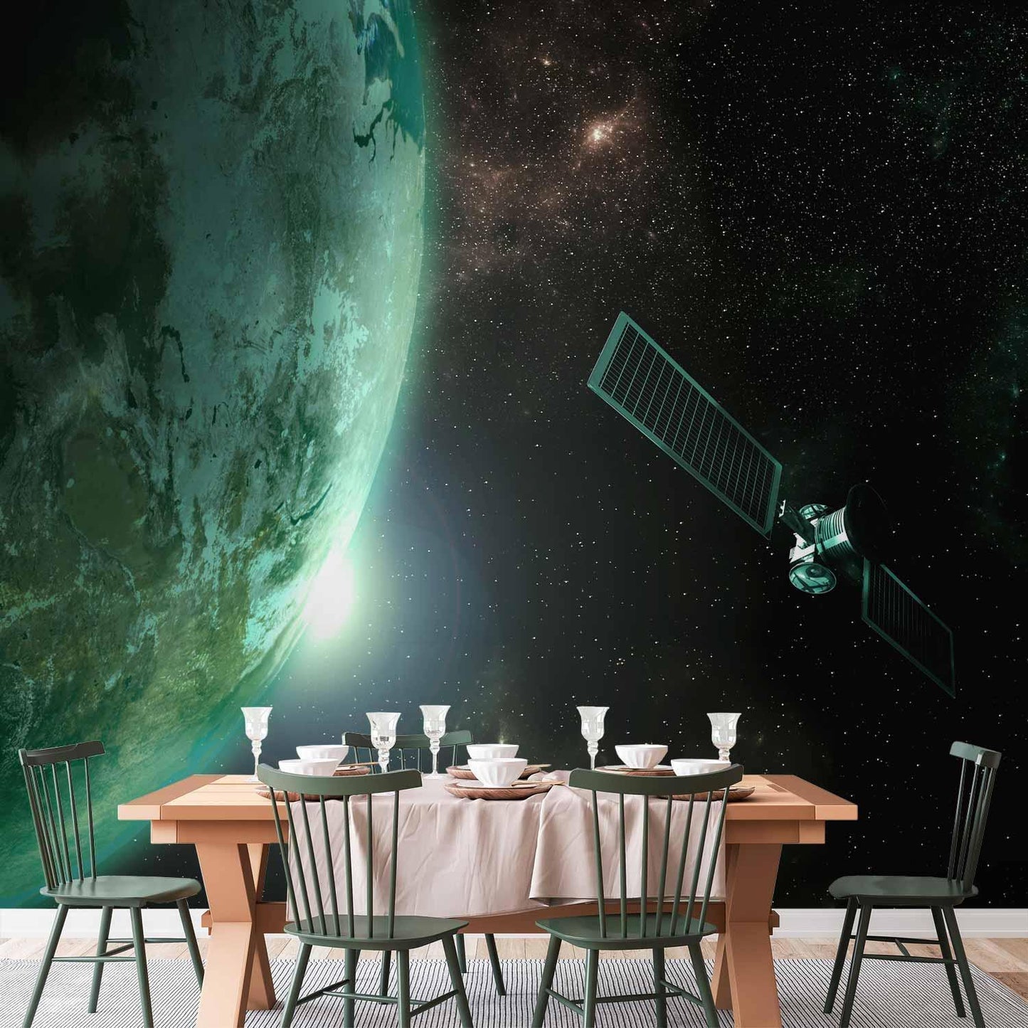 Die Fototapete „Grüner Planet“ bringt moderne Naturästhetik direkt in dein Zuhause. Das stilisierte, abstrakte Design in harmonischen Grüntönen erinnert an einen Planeten, der von Ruhe und Balance spricht.
