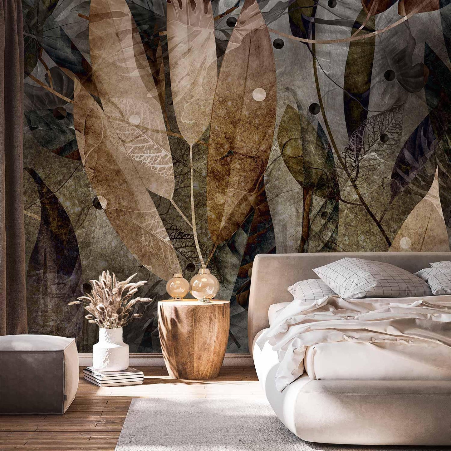 Mit dunklen, erdigen Farbtönen und sanften Lichtakzenten schafft „Hideout“ eine beruhigende, fast meditative Raumstimmung. Ob im Schlafzimmer, Lesezimmer oder im modernen Wohnbereich – diese Tapete lädt zum Entspannen und Träumen ein.