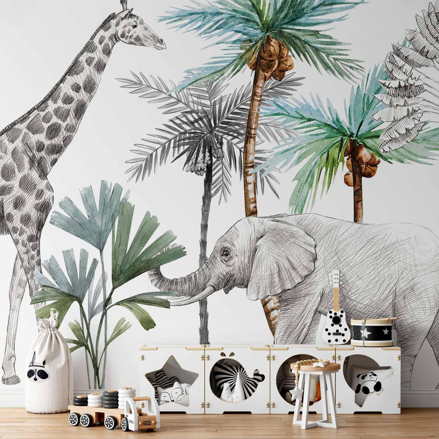 Fototapeten sind in den letzten Jahren eine häufige Wahl für Wanddekoration geworden. Sie sind eine großartige Wanddeko, die sich für verschiedene Räume eignet. Fototapeten sind eine hervorragende Alternative für das Wohnzimmer, für das Schlafzimmer und auch für das Kinderzimmer. Diese einzigartigen Dekorationen passen in praktisch jeden Raum. Wenn Sie sich immer noch fragen, ob dies die richtige Wahl ist, sind Sie hier genau richtig. Fototapete "Fototapete - Jungle Animals Wallpaper for Children's Room in Cartoon Style" wird Ihr Interieur völlig verändern. Hier finden Sie, was Sie brauchen.