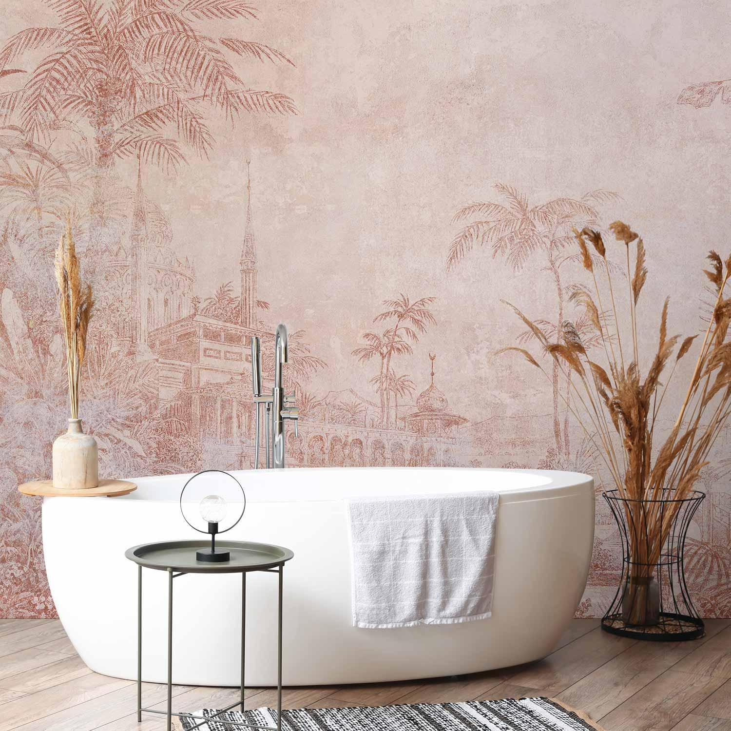 Fototapeten sind in den letzten Jahren eine häufige Wahl für Wanddekoration geworden. Sie sind eine großartige Wanddeko, die sich für verschiedene Räume eignet. Fototapeten sind eine hervorragende Alternative für das Wohnzimmer, für das Schlafzimmer und auch für das Kinderzimmer. Diese einzigartigen Dekorationen passen in praktisch jeden Raum. Wenn Sie sich immer noch fragen, ob dies die richtige Wahl ist, sind Sie hier genau richtig. Fototapete "Fototapete - Landscape with temple - engraving of Indian architecture with palm trees" wird Ihr Interieur völlig verändern. Hier finden Sie, was Sie brauchen.