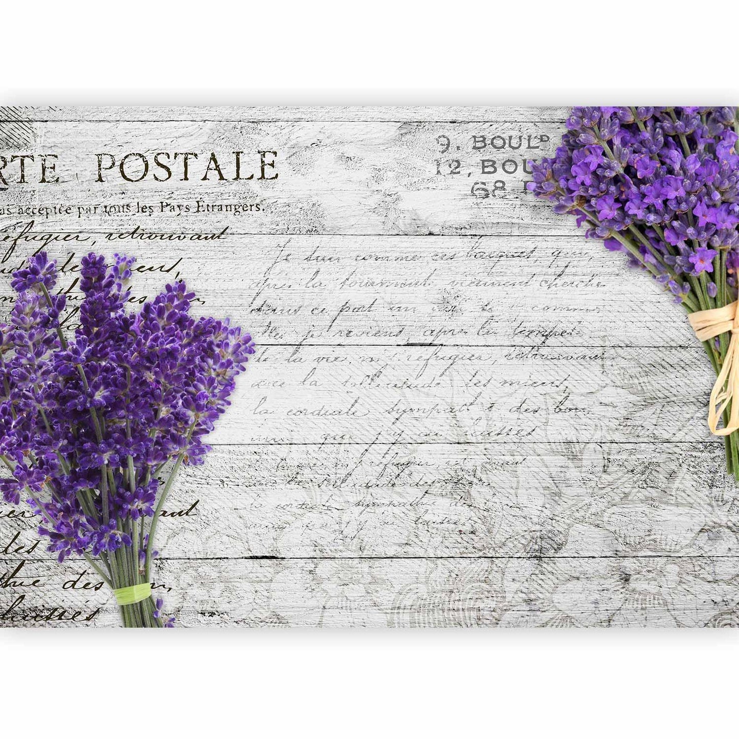 Fototapete „Lavendel-Postkarte“ – Mediterranes Flair für stilvolle Räume