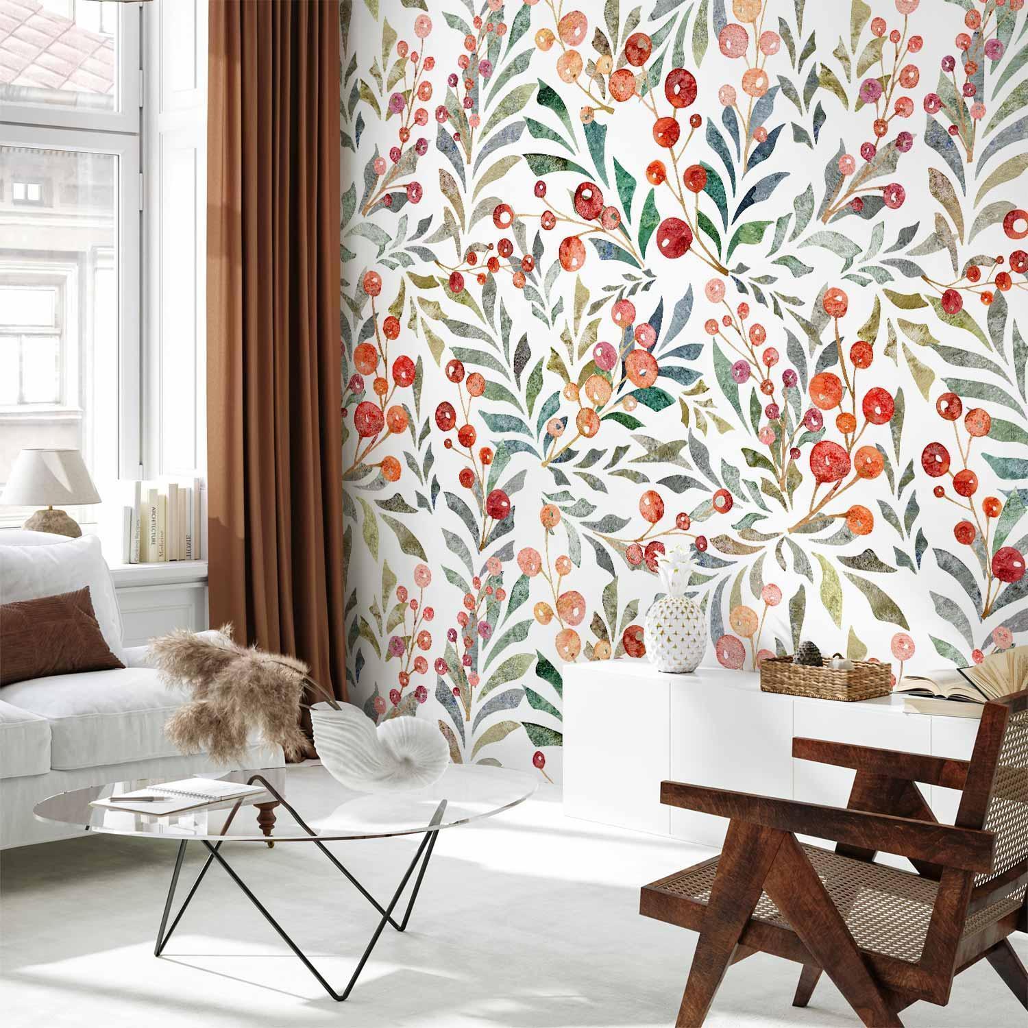 Fototapeten sind in den letzten Jahren eine häufige Wahl für Wanddekoration geworden. Sie sind eine großartige Wanddeko, die sich für verschiedene Räume eignet. Fototapeten sind eine hervorragende Alternative für das Wohnzimmer, für das Schlafzimmer und auch für das Kinderzimmer. Diese einzigartigen Dekorationen passen in praktisch jeden Raum. Wenn Sie sich immer noch fragen, ob dies die richtige Wahl ist, sind Sie hier genau richtig. Fototapete "Fototapete - Leaves of Red Berries" wird Ihr Interieur völlig verändern. Hier finden Sie, was Sie brauchen.