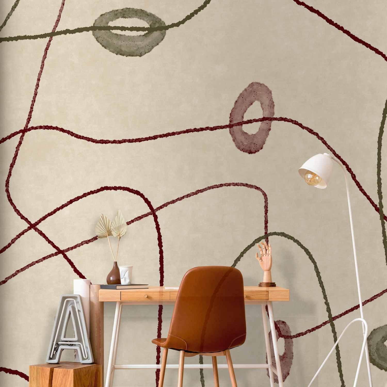 Fototapete - Lines and shapes – bead labyrinth on a pale washed background