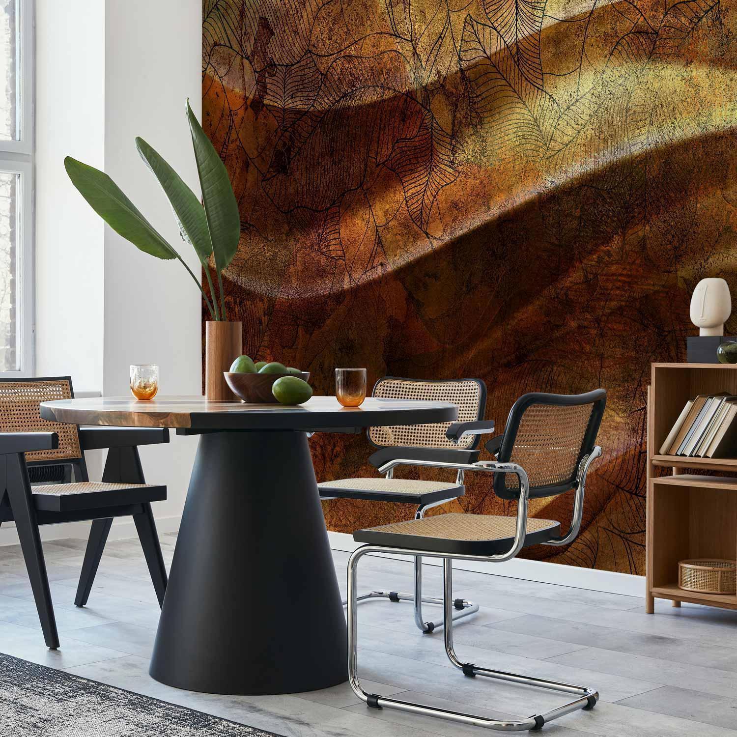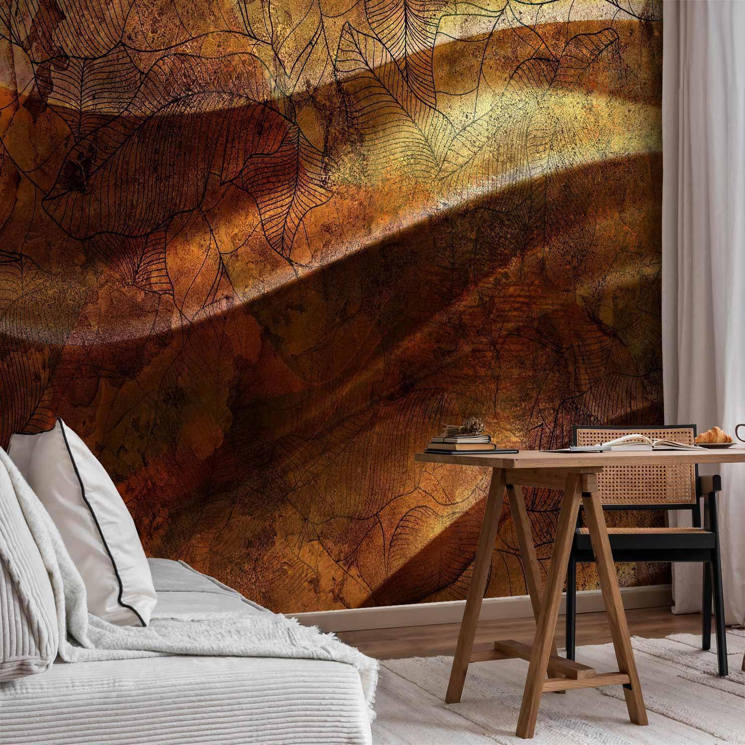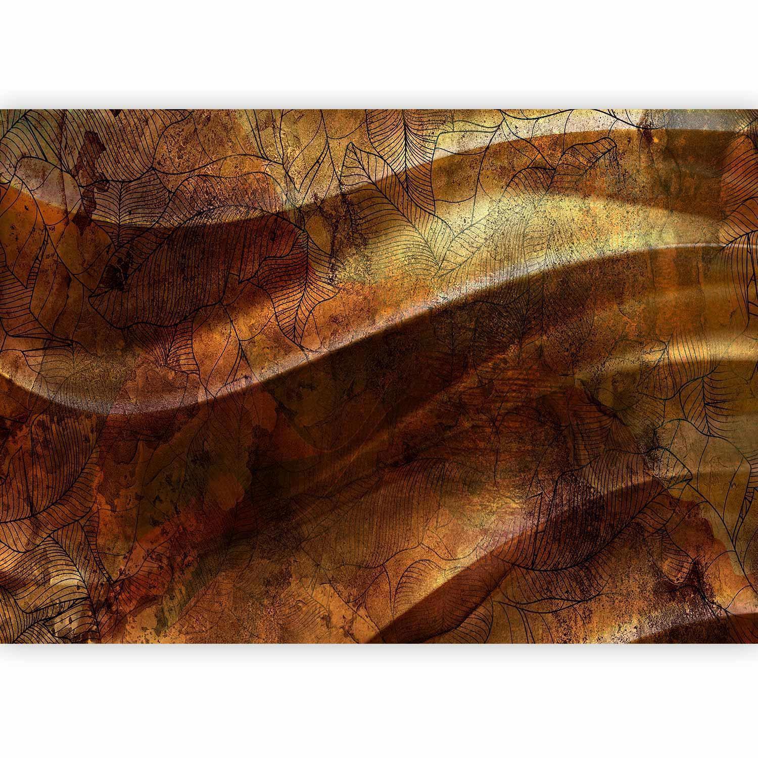 Fototapete - Liquid gold - abstract wavy composition with leaf patterns