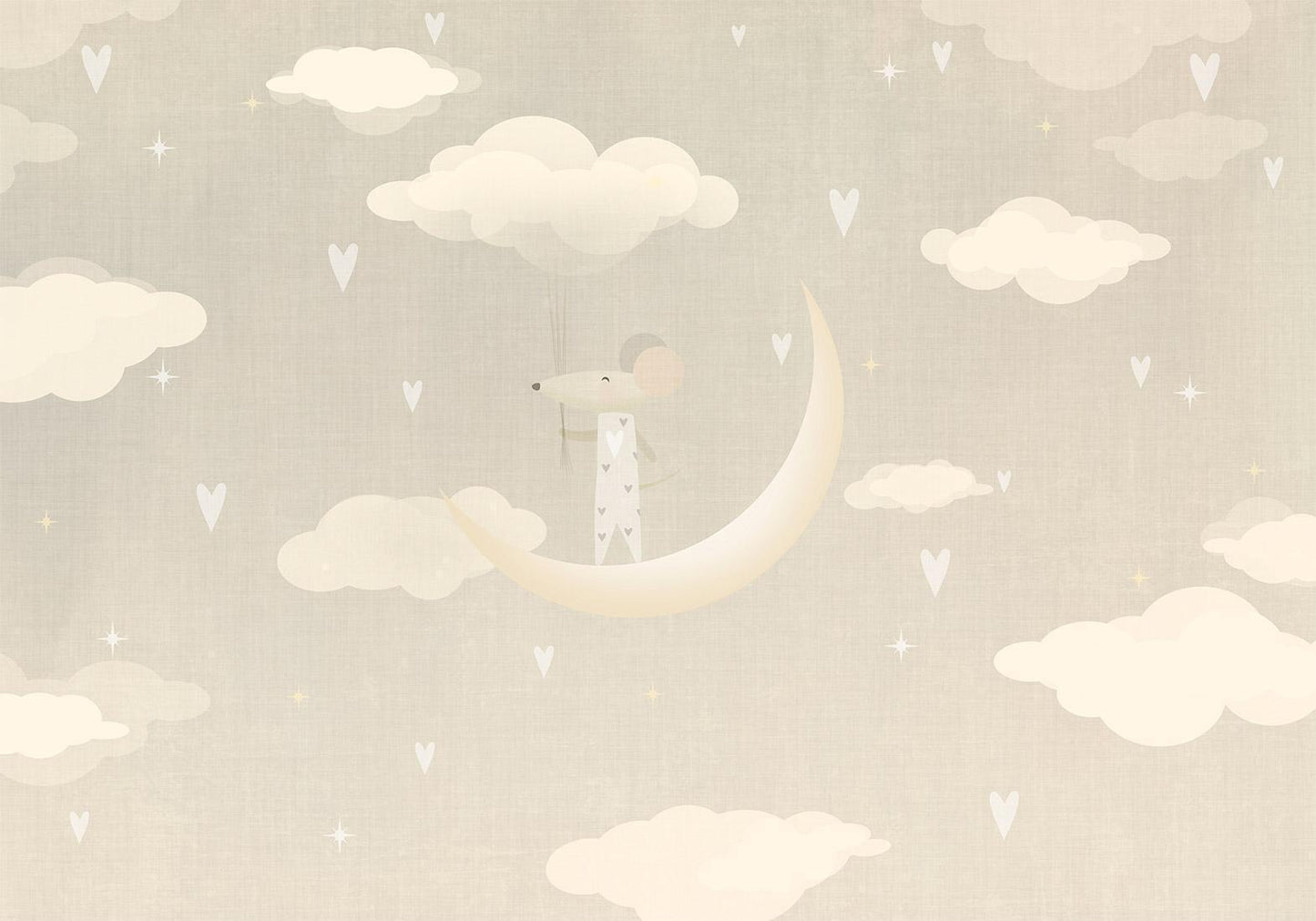 Tauche ein in eine fantasievolle Welt mit der niedlichen Maus auf dem Mond! Diese wunderschöne Fototapete verwandelt jedes Kinderzimmer in ein magisches Universum voller Träume und Abenteuer.