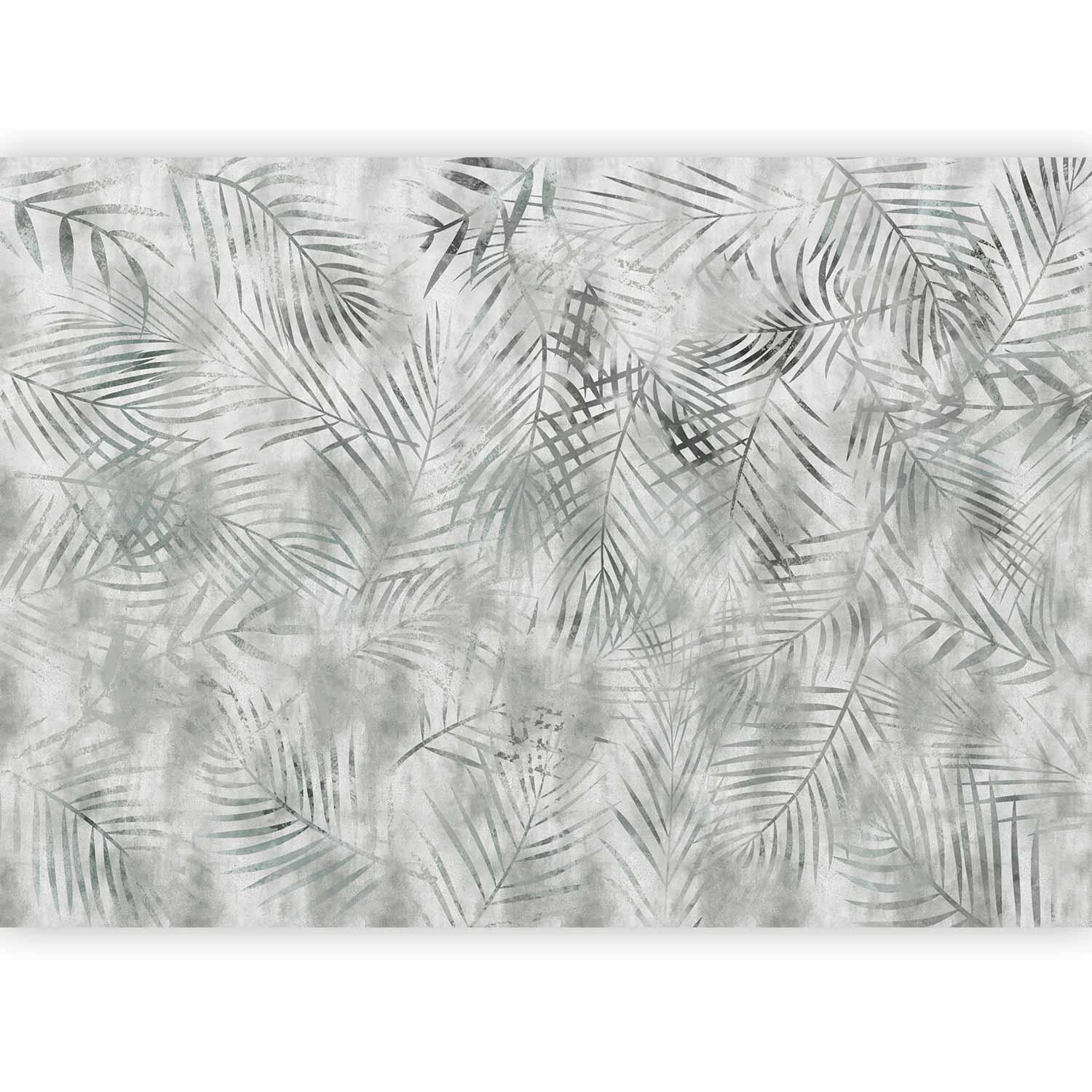 Fototapete - Minimalist landscape - nature motif with grey exotic leaves