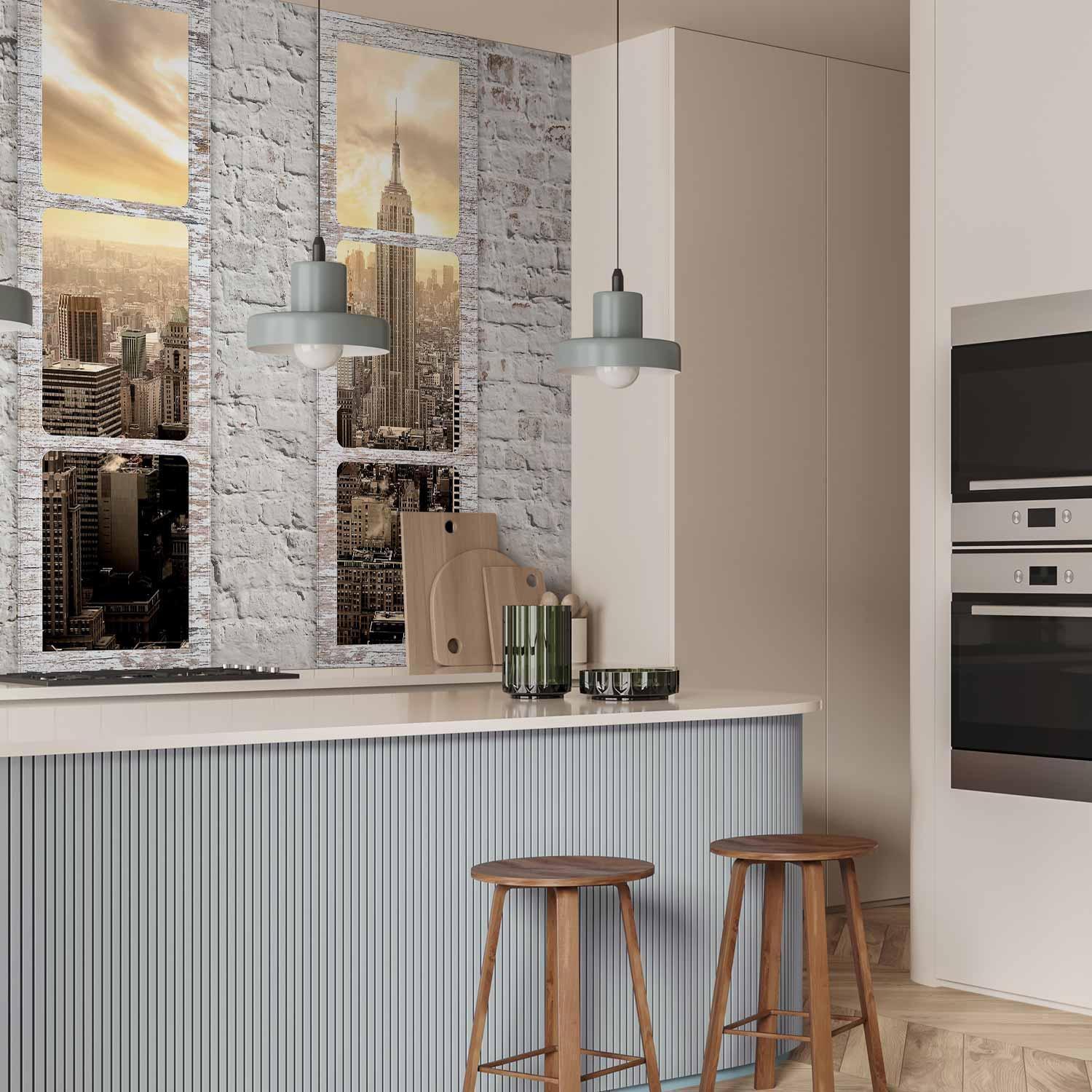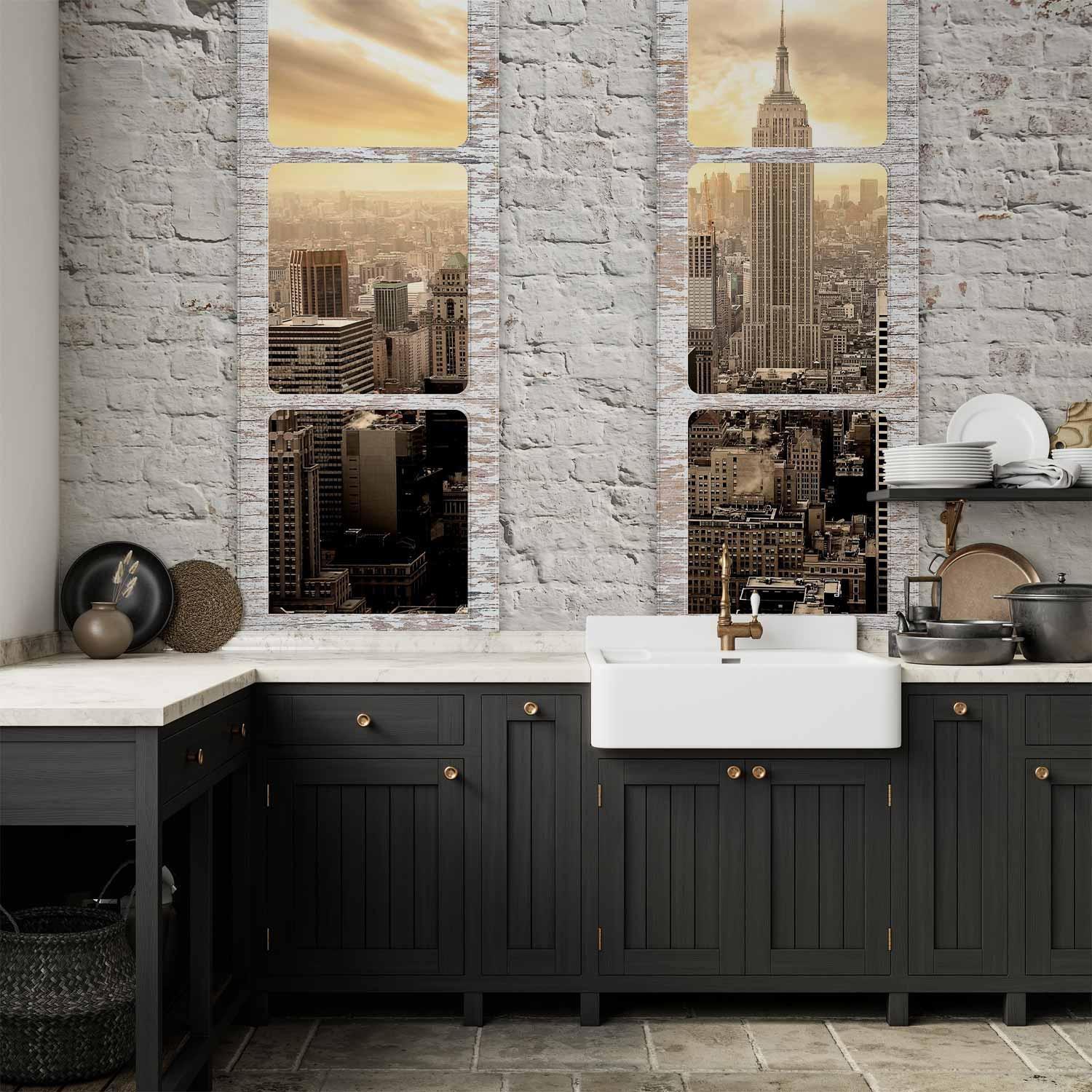 Fototapete "Fototapete - New York: view from the window" ist ein hochwertiger Digitaldruck, der ein qualitativ hochwertiges Produkt und eine einfache Montage garantiert. Fototapete Schlafzimmer ist eine Revolution in der Wandgestaltung. Wählen Sie das passende Universalmotiv für Ihr Schlafzimmer und genießen Sie jede Nacht einen einzigartigen Ausblick. Sie können die Größe der Dekoration an Ihre räumlichen Gegebenheiten anpassen. Außerdem können Sie das Material und die zusätzlichen Effekte wählen, die auf der Fototapete Schlafzimmer zu sehen sind. Ähnliche Motive, die Sie im Schlafzimmer verwenden, können auch in der Küche eingesetzt werden. Die Fototapete Küche eignet sich auch gut für das Schlafzimmer und das Wohnzimmer. Sie können Ihre Wanddekoration nach Belieben konfigurieren und sie so anpassen, dass sie perfekt in jeden Raum passt.