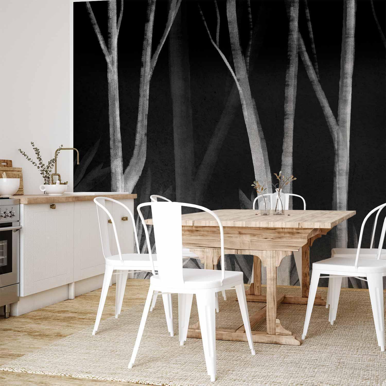Fototapeten sind in den letzten Jahren eine häufige Wahl für Wanddekoration geworden. Sie sind eine großartige Wanddeko, die sich für verschiedene Räume eignet. Fototapeten sind eine hervorragende Alternative für das Wohnzimmer, für das Schlafzimmer und auch für das Kinderzimmer. Diese einzigartigen Dekorationen passen in praktisch jeden Raum. Wenn Sie sich immer noch fragen, ob dies die richtige Wahl ist, sind Sie hier genau richtig. Fototapete "Fototapete - Noise of the forest at night - minimalist landscape of white trees on a black background" wird Ihr Interieur völlig verändern. Hier finden Sie, was Sie brauchen.