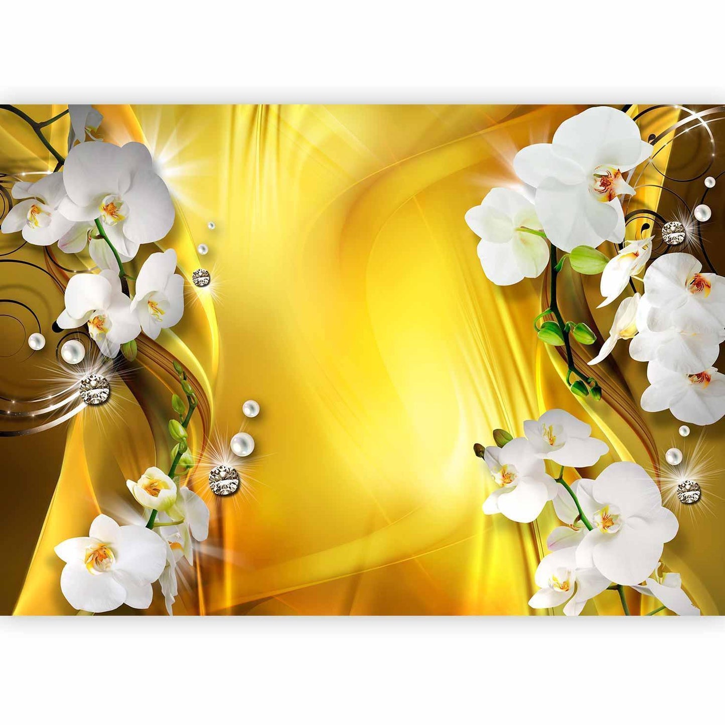 Die Fototapete „Orchidee in Gold“ verwandelt jede Wand in ein exklusives Kunstwerk. Zarte Orchideenblüten in Kombination mit edlen Goldtönen verleihen deinem Raum ein luxuriöses, stilvolles Flair – perfekt für Wohnzimmer, Schlafzimmer oder ein elegantes Homeoffice.