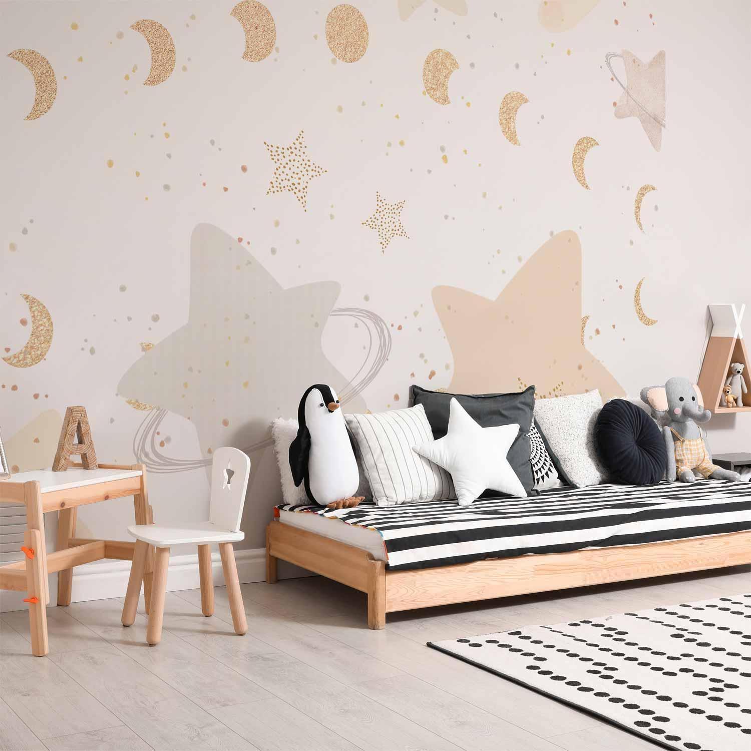 Fototapeten sind in den letzten Jahren eine häufige Wahl für Wanddekoration geworden. Sie sind eine großartige Wanddeko, die sich für verschiedene Räume eignet. Fototapeten sind eine hervorragende Alternative für das Wohnzimmer, für das Schlafzimmer und auch für das Kinderzimmer. Diese einzigartigen Dekorationen passen in praktisch jeden Raum. Wenn Sie sich immer noch fragen, ob dies die richtige Wahl ist, sind Sie hier genau richtig. Fototapete "Fototapete - Phases of the Moon Among Stardust" wird Ihr Interieur völlig verändern. Hier finden Sie, was Sie brauchen.
