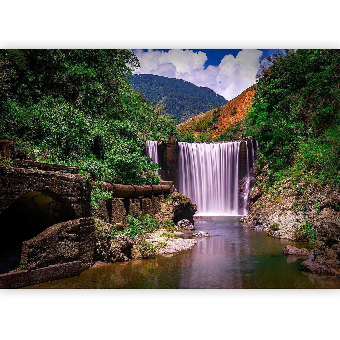 Erleben Sie die entspannende Kraft der Natur mit karibischem Flair. Die Fototapete 'Reggae Wasserfälle' von Artgeist bringt die majestätische Schönheit tropischer Wasserfälle und die positive Energie der Reggae-Kultur an Ihre Wand und schafft eine Oase der Ruhe und des Wohlbefindens.