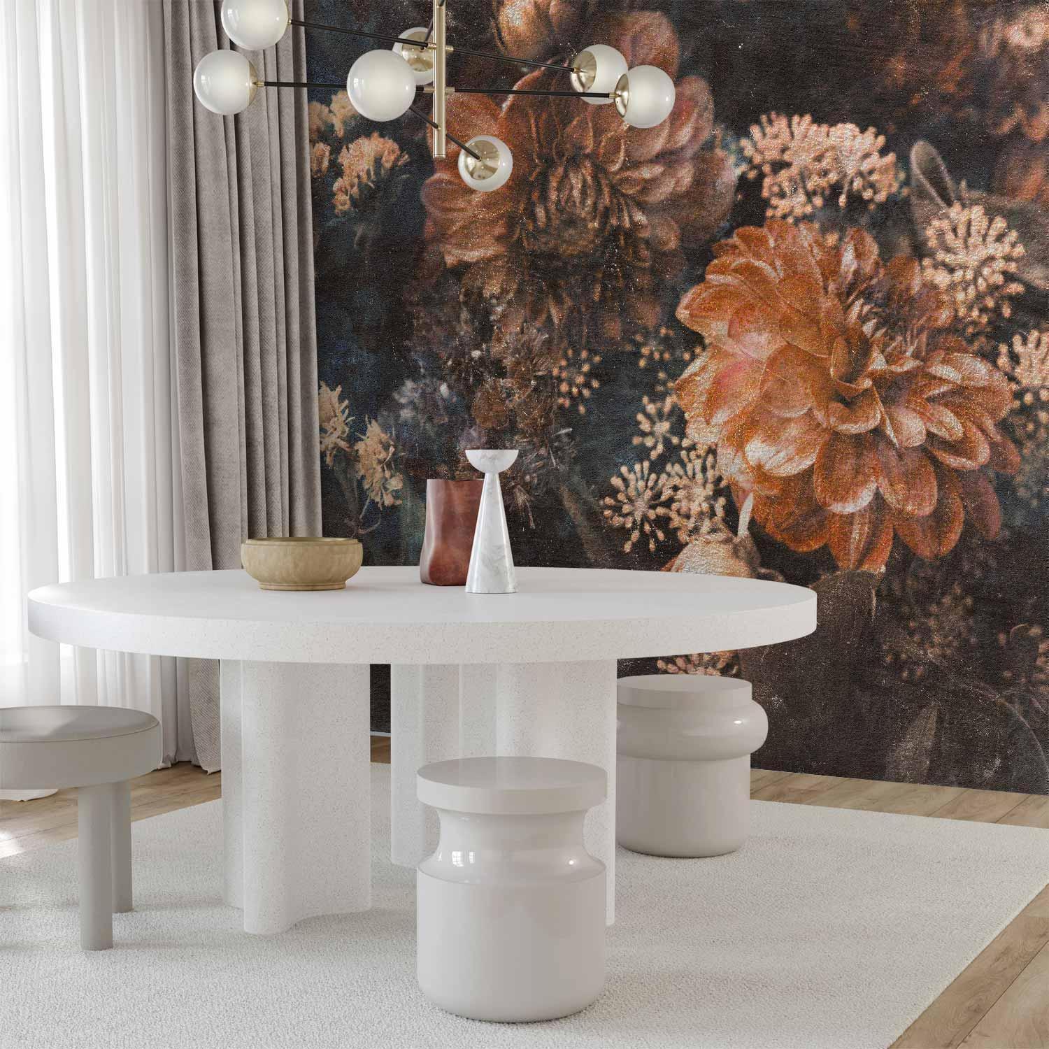 Fototapete "Fototapete - Retro Flowers - Third Variant" ist ein hochwertiger Digitaldruck, der ein qualitativ hochwertiges Produkt und eine einfache Montage garantiert. Fototapete Schlafzimmer ist eine Revolution in der Wandgestaltung. Wählen Sie das passende Universalmotiv für Ihr Schlafzimmer und genießen Sie jede Nacht einen einzigartigen Ausblick. Sie können die Größe der Dekoration an Ihre räumlichen Gegebenheiten anpassen. Außerdem können Sie das Material und die zusätzlichen Effekte wählen, die auf der Fototapete Schlafzimmer zu sehen sind. Ähnliche Motive, die Sie im Schlafzimmer verwenden, können auch in der Küche eingesetzt werden. Die Fototapete Küche eignet sich auch gut für das Schlafzimmer und das Wohnzimmer. Sie können Ihre Wanddekoration nach Belieben konfigurieren und sie so anpassen, dass sie perfekt in jeden Raum passt.