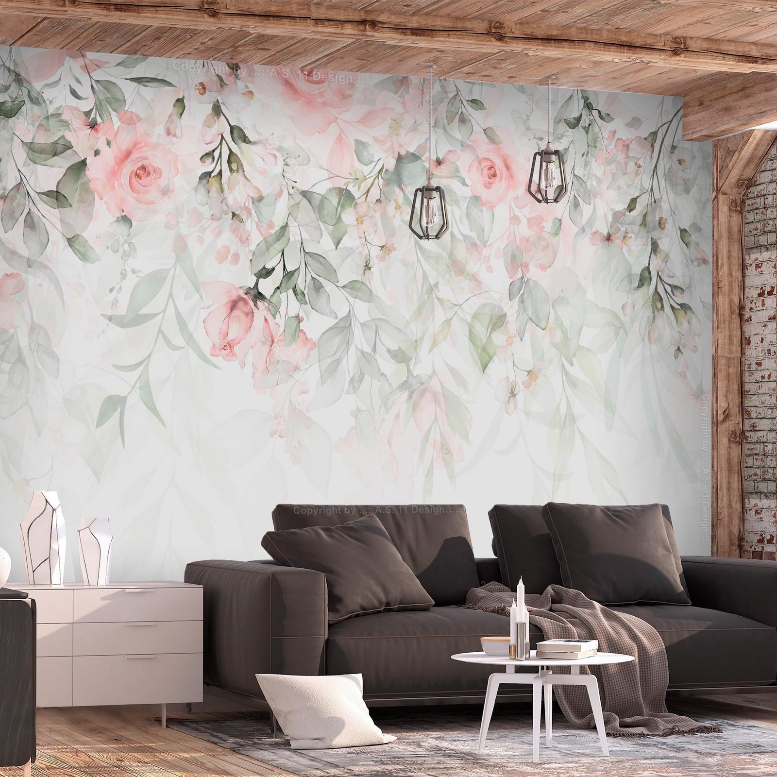 Die Fototapete „Rosenwasserfall“ verzaubert mit einem sanften Blütenregen aus zartrosa Rosen, der sich wie ein Wasserfall über die Wand ergießt. Dieses florale Wandbild schafft eine stimmungsvolle, feminine Atmosphäre – ideal für Schlafzimmer, Ankleidezimmer, Salons oder elegante Wohnbereiche.