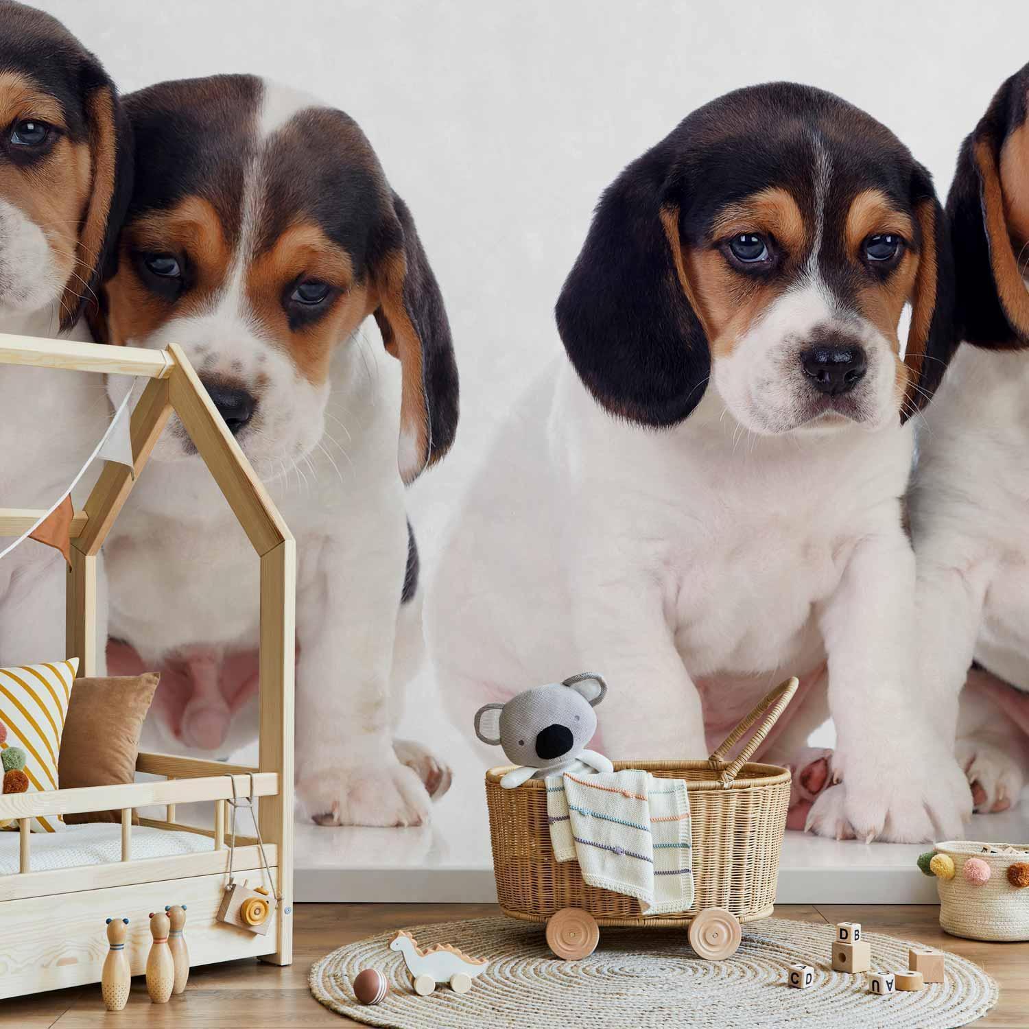 Mit dieser Tapete holst du dir die treuen Blicke kleiner Fellnasen direkt an die Wand – für ein Zuhause voller Gefühl.