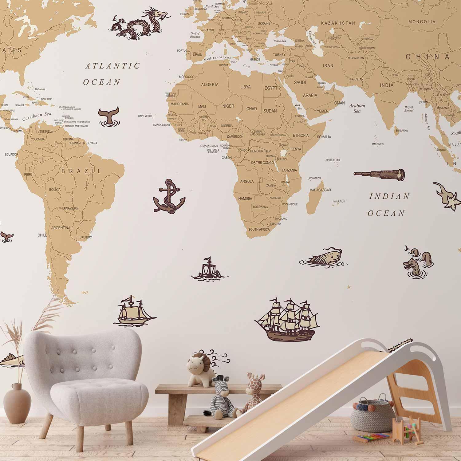 Fototapeten sind in den letzten Jahren eine häufige Wahl für Wanddekoration geworden. Sie sind eine großartige Wanddeko, die sich für verschiedene Räume eignet. Fototapeten sind eine hervorragende Alternative für das Wohnzimmer, für das Schlafzimmer und auch für das Kinderzimmer. Diese einzigartigen Dekorationen passen in praktisch jeden Raum. Wenn Sie sich immer noch fragen, ob dies die richtige Wahl ist, sind Sie hier genau richtig. Fototapete "Fototapete - Sea Wolf Map - Countries With Pirate Illustrations" wird Ihr Interieur völlig verändern. Hier finden Sie, was Sie brauchen.