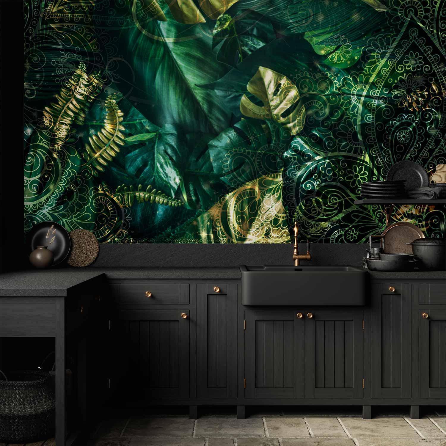 Fototapete "Fototapete - Emerald Jungle" ist ein hochwertiger Digitaldruck, der ein qualitativ hochwertiges Produkt und eine einfache Montage garantiert. Fototapete Schlafzimmer ist eine Revolution in der Wandgestaltung. Wählen Sie das passende Universalmotiv für Ihr Schlafzimmer und genießen Sie jede Nacht einen einzigartigen Ausblick. Sie können die Größe der Dekoration an Ihre räumlichen Gegebenheiten anpassen. Außerdem können Sie das Material und die zusätzlichen Effekte wählen, die auf der Fototapete Schlafzimmer zu sehen sind. Ähnliche Motive, die Sie im Schlafzimmer verwenden, können auch in der Küche eingesetzt werden. Die Fototapete Küche eignet sich auch gut für das Schlafzimmer und das Wohnzimmer. Sie können Ihre Wanddekoration nach Belieben konfigurieren und sie so anpassen, dass sie perfekt in jeden Raum passt.