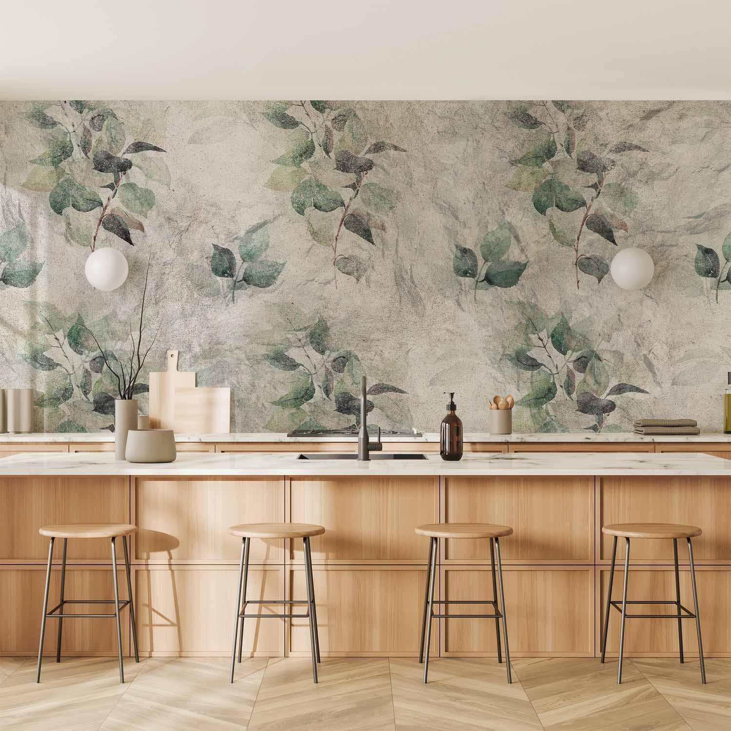 Fototapete "Fototapete - Statue of nature - plant motif with green leaves with grey patterns" ist ein hochwertiger Digitaldruck, der ein qualitativ hochwertiges Produkt und eine einfache Montage garantiert. Fototapete Schlafzimmer ist eine Revolution in der Wandgestaltung. Wählen Sie das passende Universalmotiv für Ihr Schlafzimmer und genießen Sie jede Nacht einen einzigartigen Ausblick. Sie können die Größe der Dekoration an Ihre räumlichen Gegebenheiten anpassen. Außerdem können Sie das Material und die zusätzlichen Effekte wählen, die auf der Fototapete Schlafzimmer zu sehen sind. Ähnliche Motive, die Sie im Schlafzimmer verwenden, können auch in der Küche eingesetzt werden. Die Fototapete Küche eignet sich auch gut für das Schlafzimmer und das Wohnzimmer. Sie können Ihre Wanddekoration nach Belieben konfigurieren und sie so anpassen, dass sie perfekt in jeden Raum passt.
