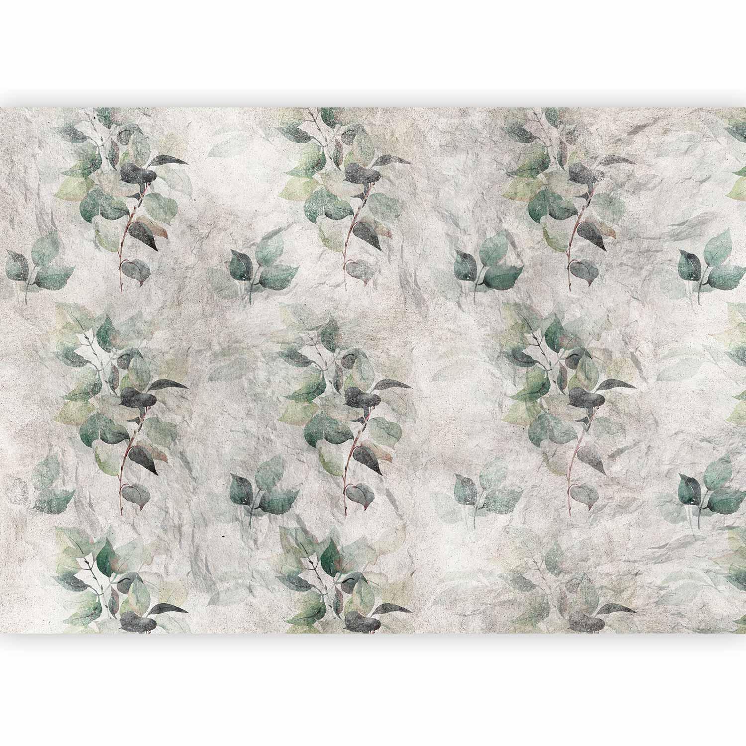 Fototapete - Statue of nature - plant motif with green leaves with grey patterns