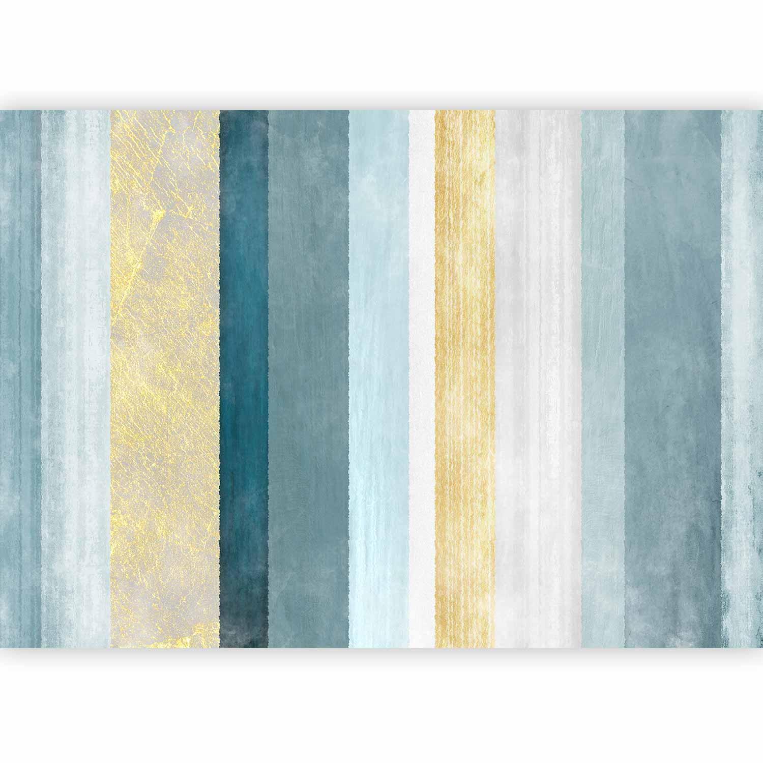 Fototapete - Striped pattern - abstract background in stripes in blue tones with gold pattern