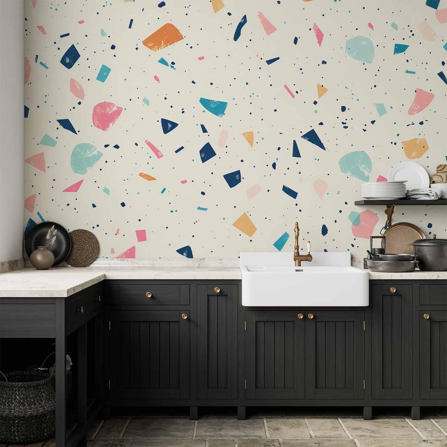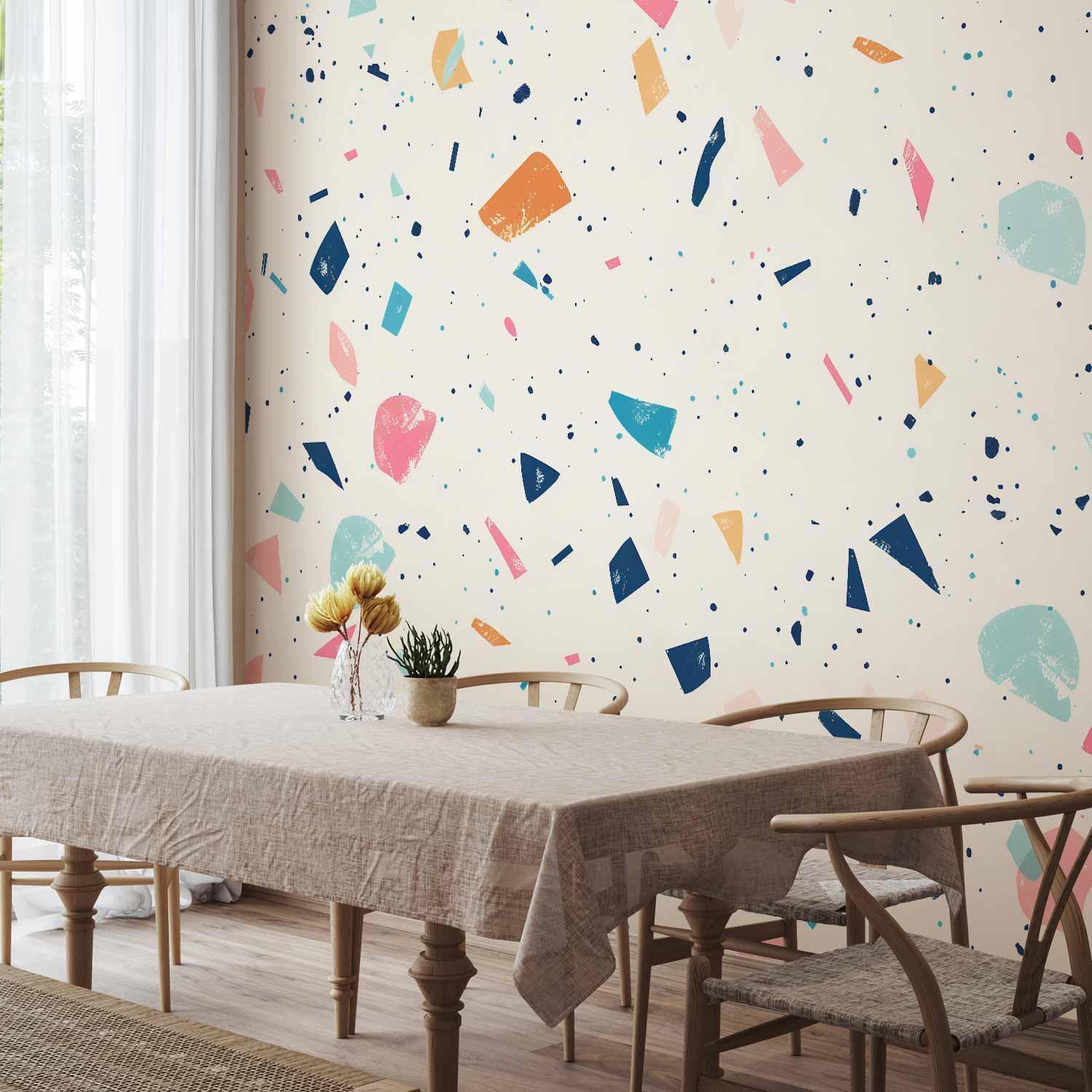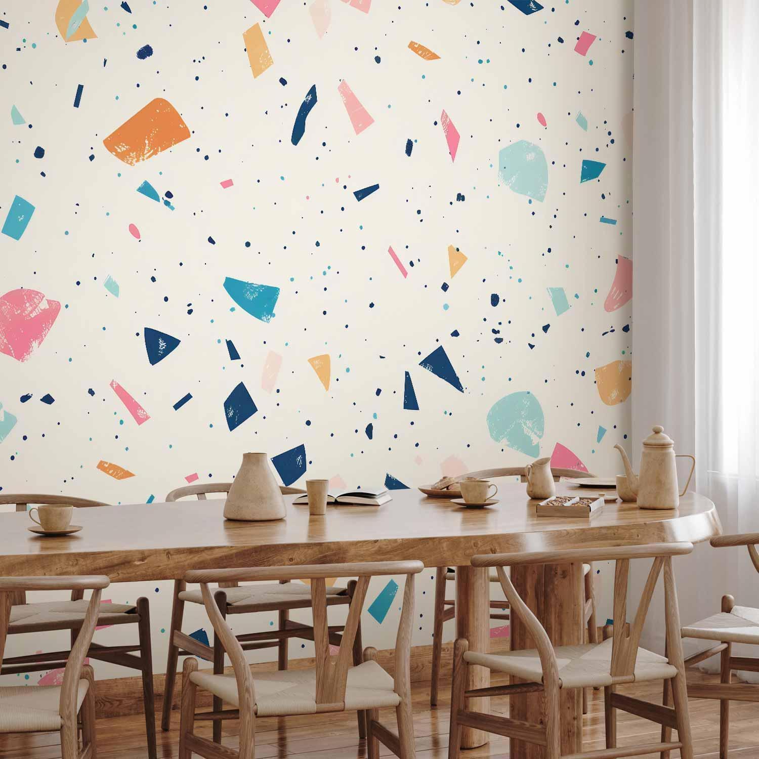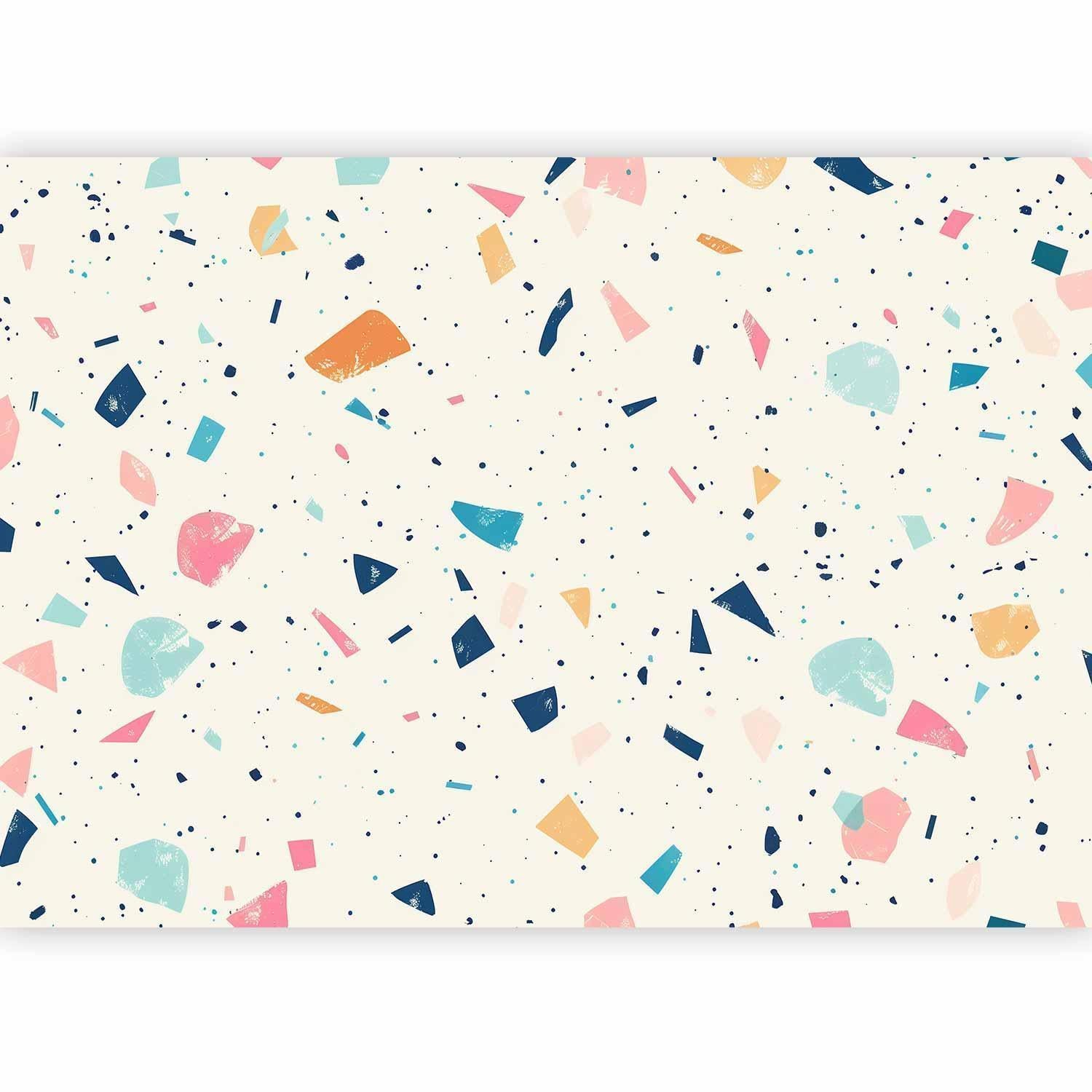 Fototapete "Fototapete - Terrazzo with Multicolored Large Elements Cheerful Pattern on a Light Background" ist ein hochwertiger Digitaldruck, der ein qualitativ hochwertiges Produkt und eine einfache Montage garantiert. Fototapete Schlafzimmer ist eine Revolution in der Wandgestaltung. Wählen Sie das passende Universalmotiv für Ihr Schlafzimmer und genießen Sie jede Nacht einen einzigartigen Ausblick. Sie können die Größe der Dekoration an Ihre räumlichen Gegebenheiten anpassen. Außerdem können Sie das Material und die zusätzlichen Effekte wählen, die auf der Fototapete Schlafzimmer zu sehen sind. Ähnliche Motive, die Sie im Schlafzimmer verwenden, können auch in der Küche eingesetzt werden. Die Fototapete Küche eignet sich auch gut für das Schlafzimmer und das Wohnzimmer. Sie können Ihre Wanddekoration nach Belieben konfigurieren und sie so anpassen, dass sie perfekt in jeden Raum passt.